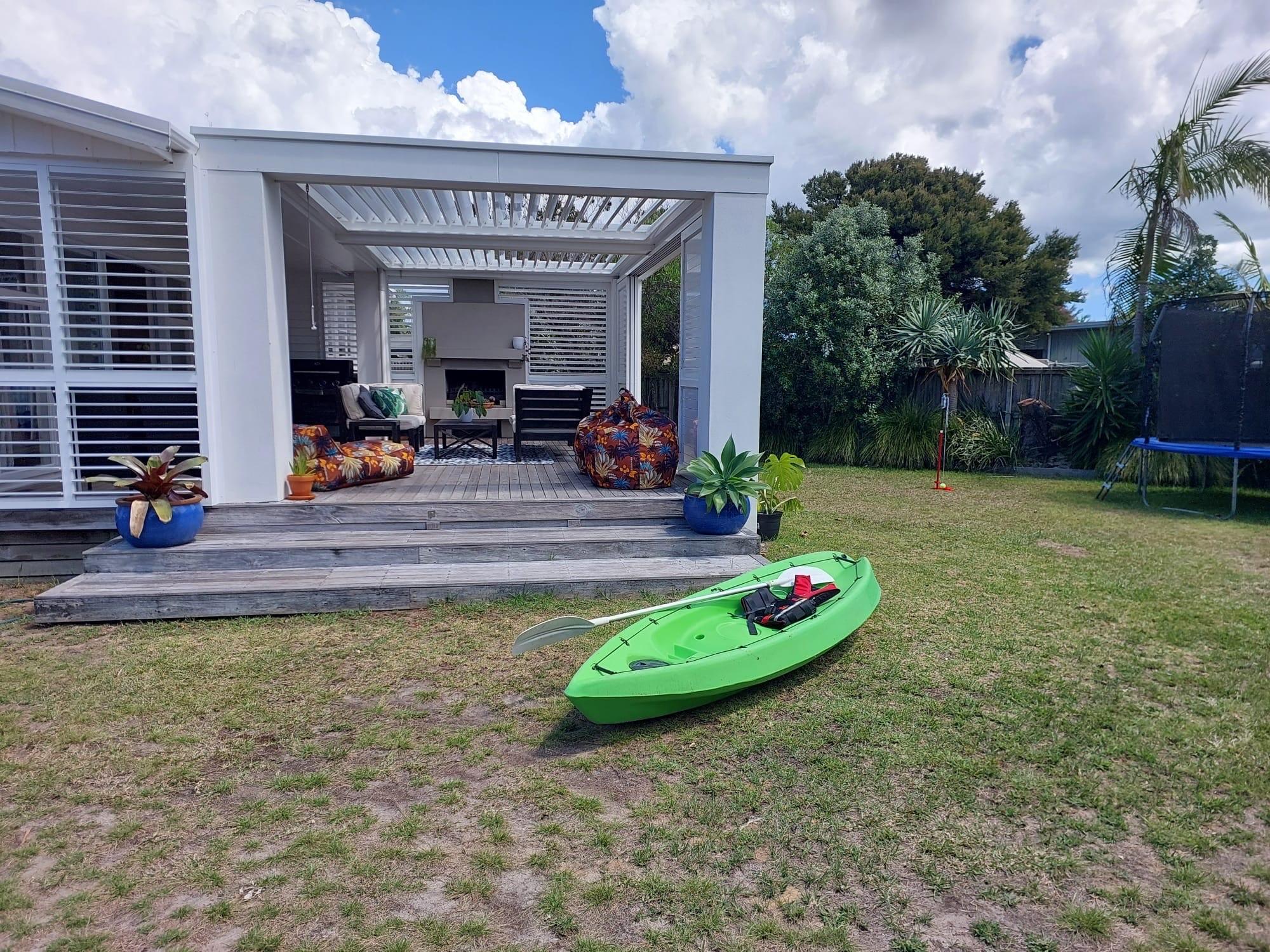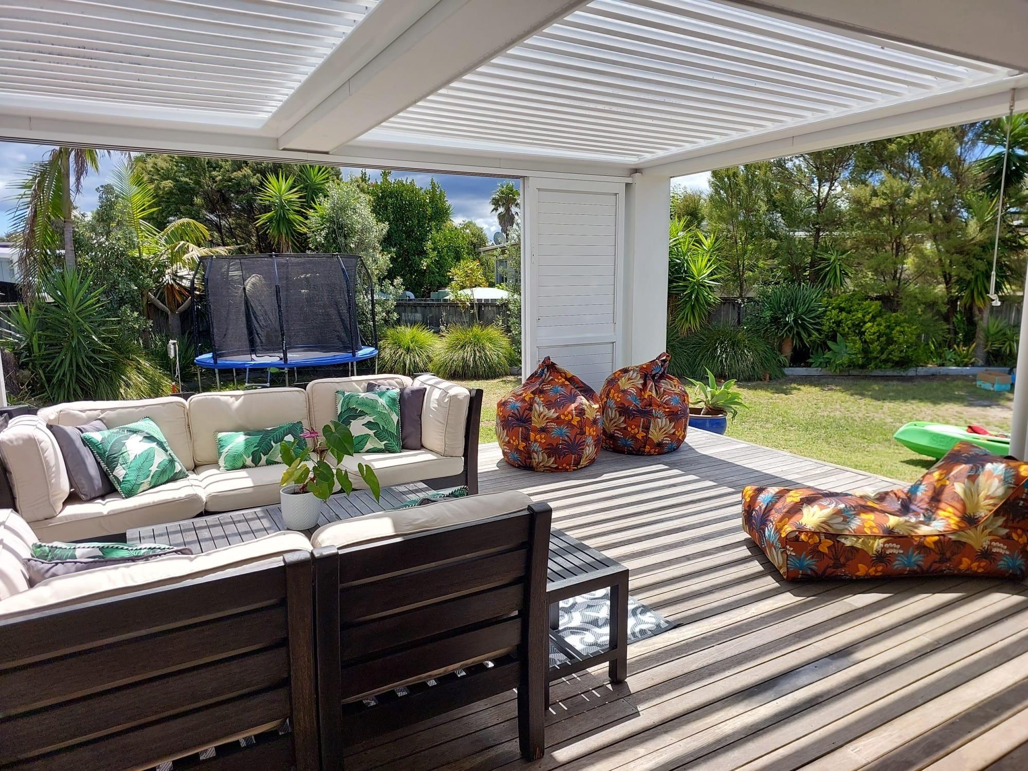Kick back, relax, and enjoy the best of Mangawhai from this super cool Bohemian-style 3-bedroom bach — complete with tropical gardens, large flat lawn and amazing outdoor living spaces. This is truly the ideal family holiday spot.