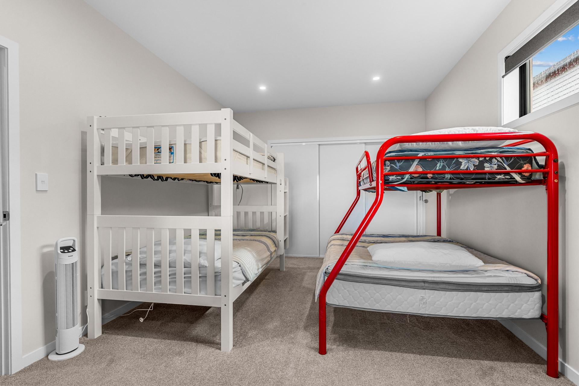 Downstairs, you'll discover a second living room/media lounge – perfect for movie nights or kids' downtime – along with a third double bedroom and a bunk room with a set of Single Bunks and a Single over Double bunk. A third full bathroom, laundry facilities, and a collection of board games ensure everyone is catered for, rain or shine.