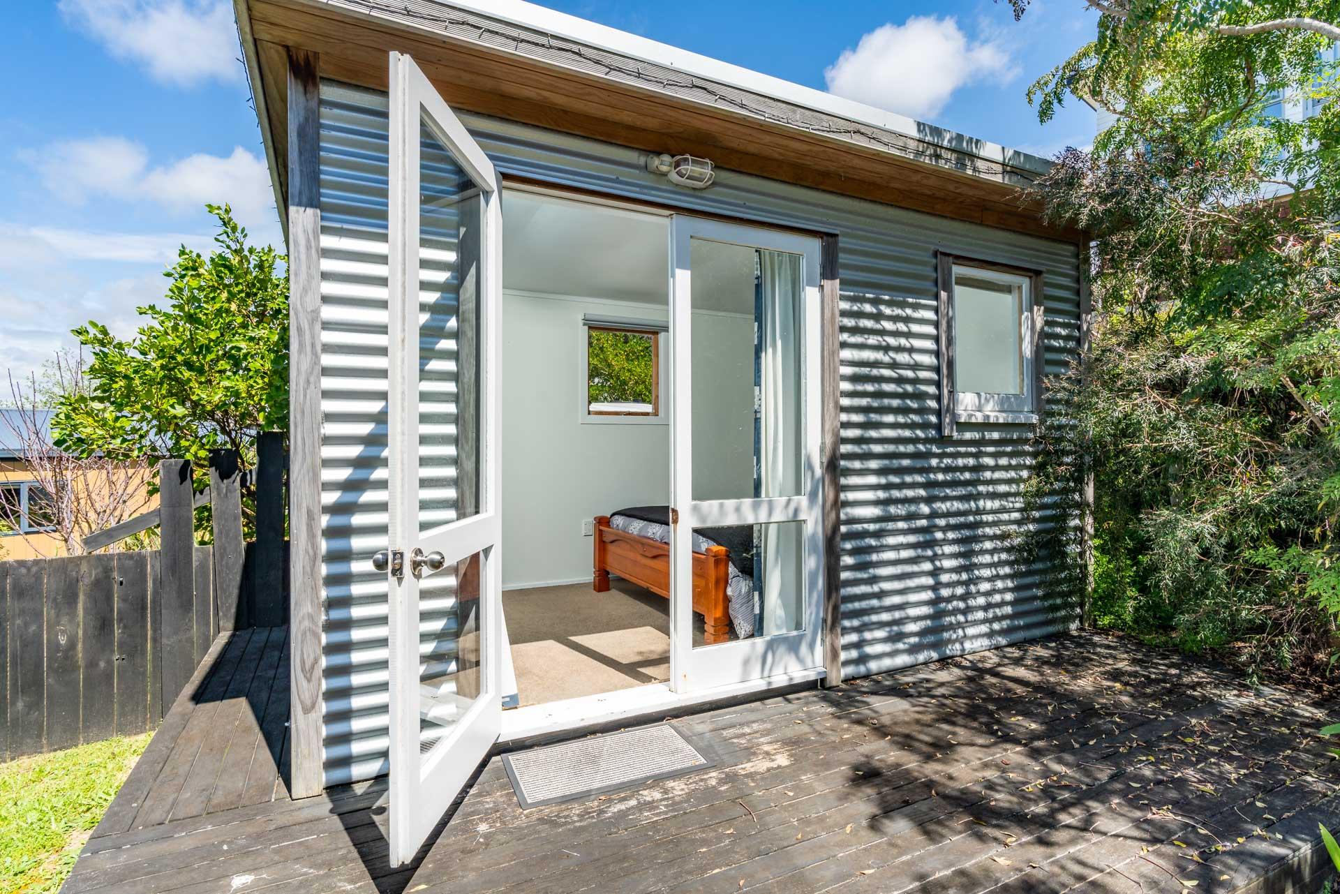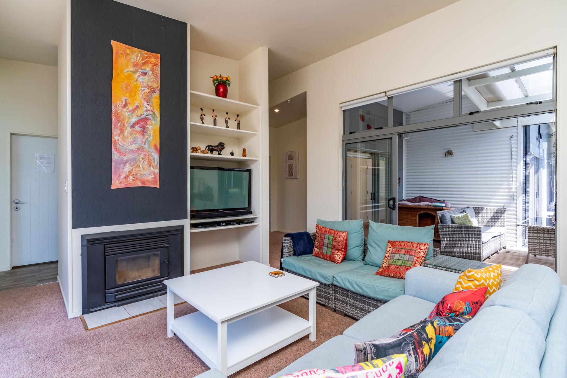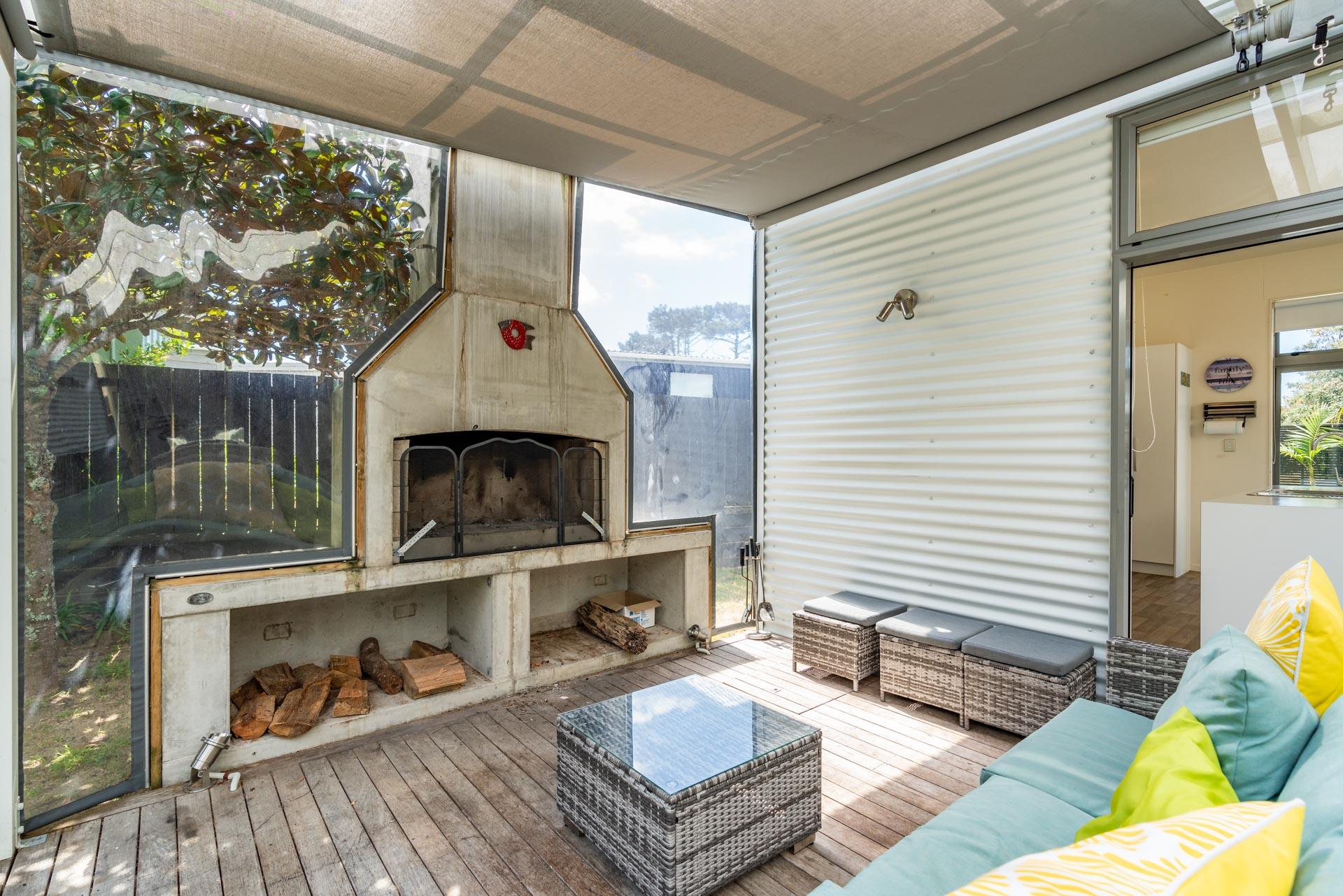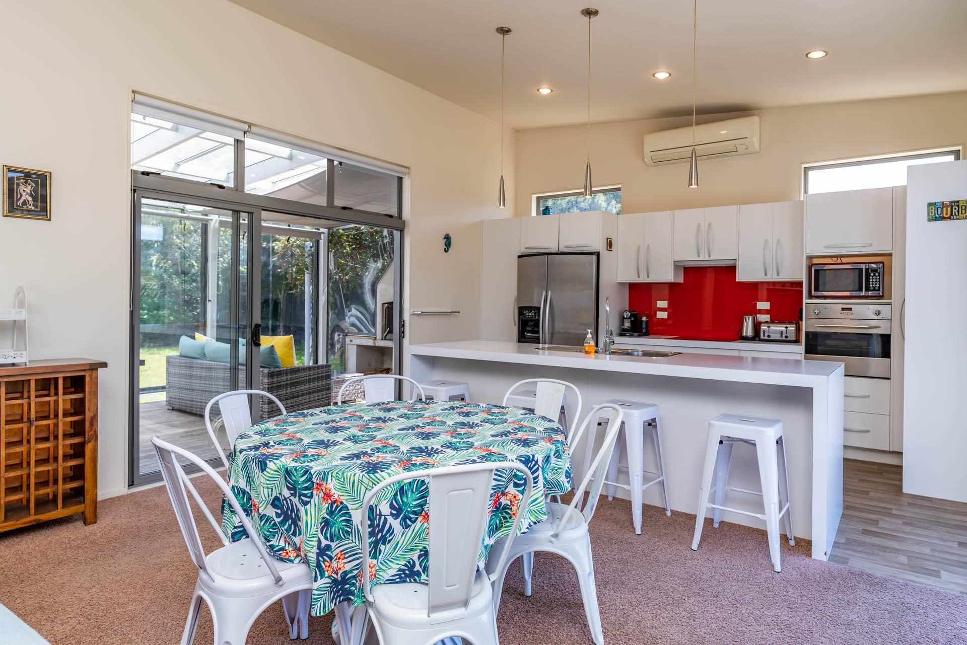 All Decked Out is a spacious modern home with multiple living/entertaining areas both inside and out. The modern kitchen/dining/living flows out onto decks front and back, with the back covered deck including an open fireplace and plastic blinds for a cozy spot on cooler evenings. There is also a second living space which opens out onto a third deck. The main house has 3 bedrooms, 2 with a Queen and the other with 2 Singles. There is also a small sleepout at the back of the section with a Queen bed in it. For your coffee fix just bring your own pods for the Nespresso machine.