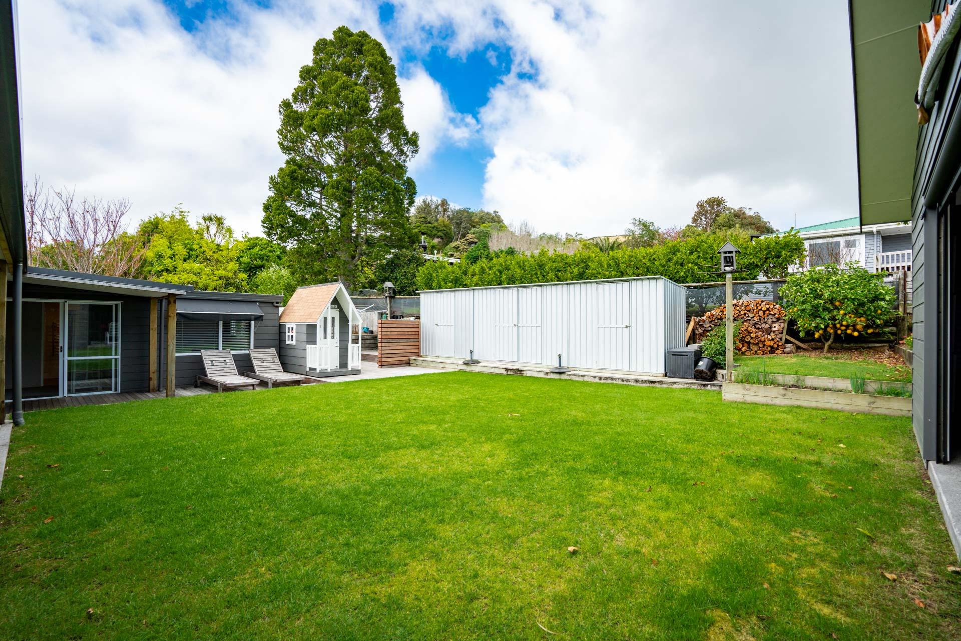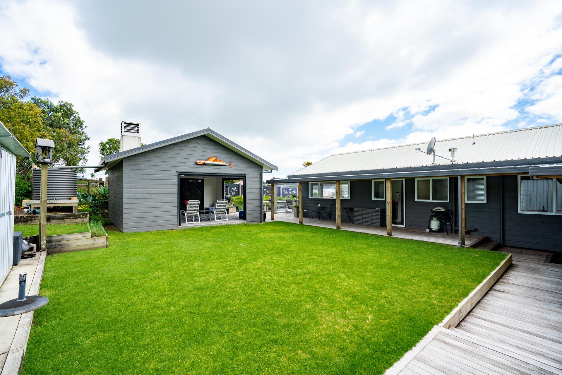 With plenty of parking for cars and a boat, this bach is ideal for one to two families or a small group of mature couples.