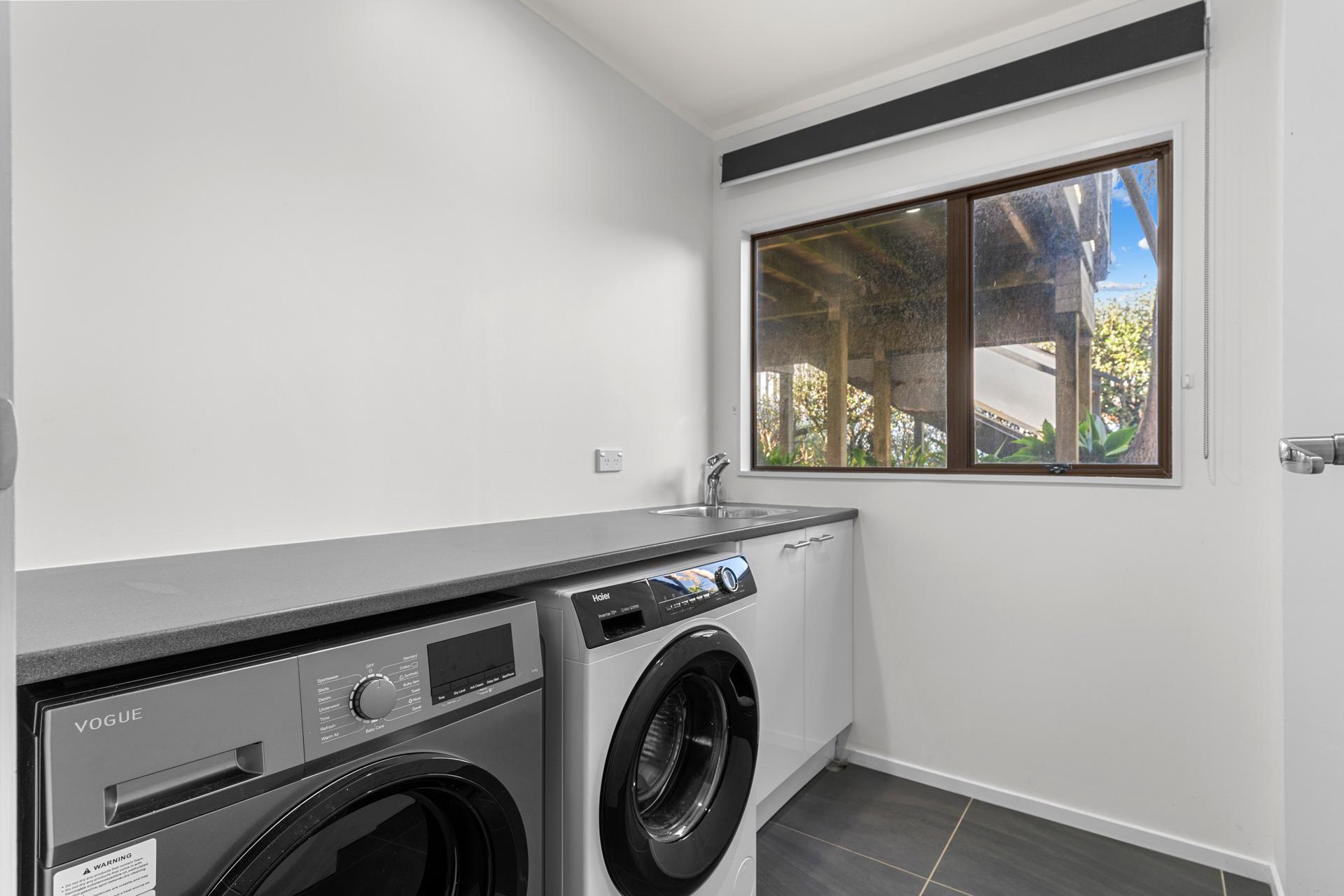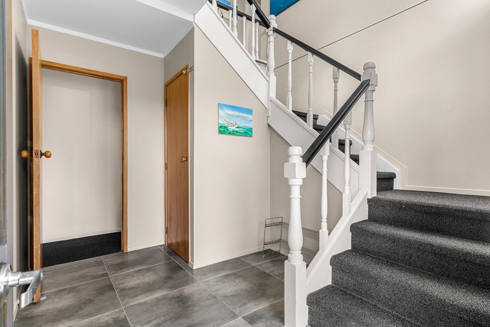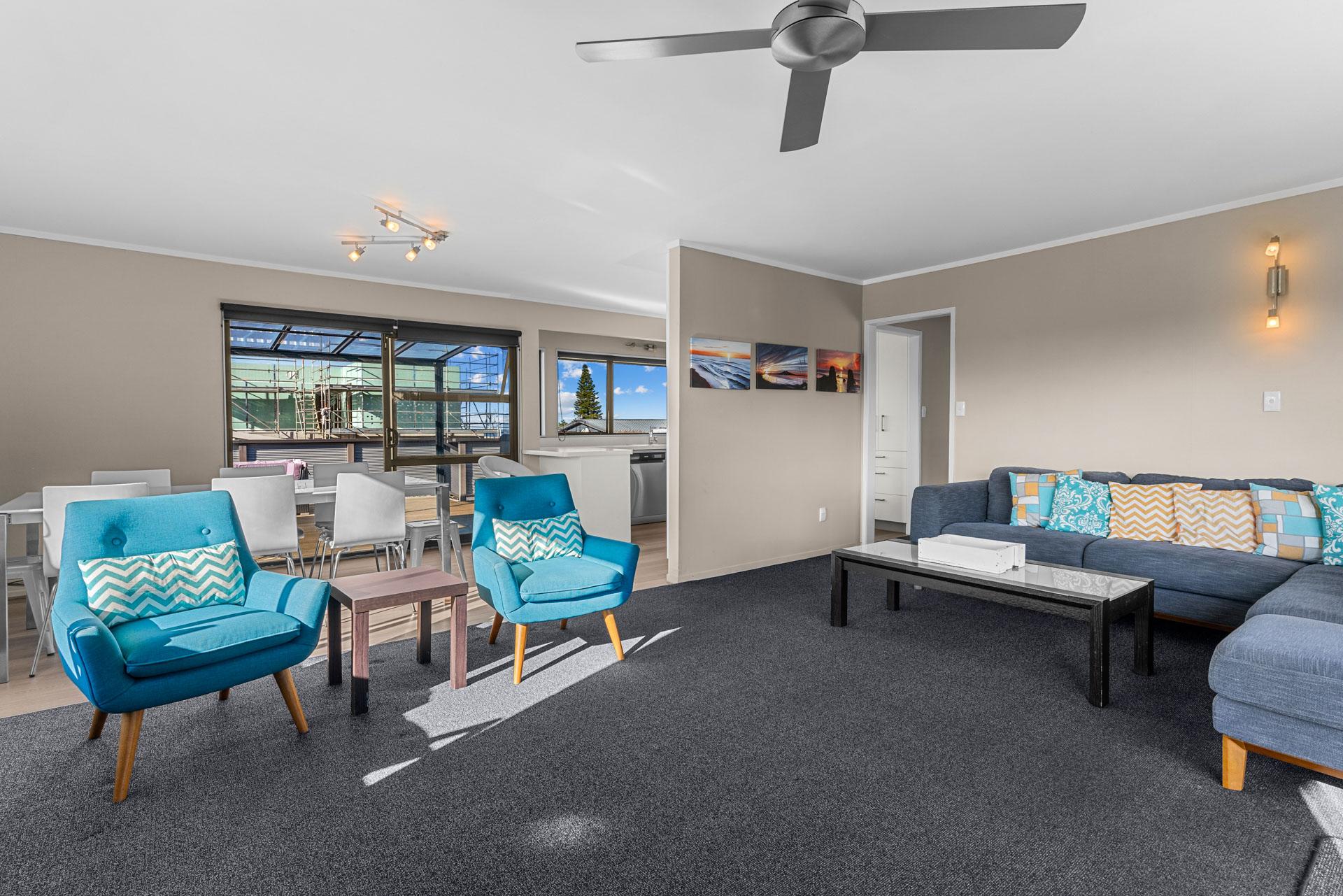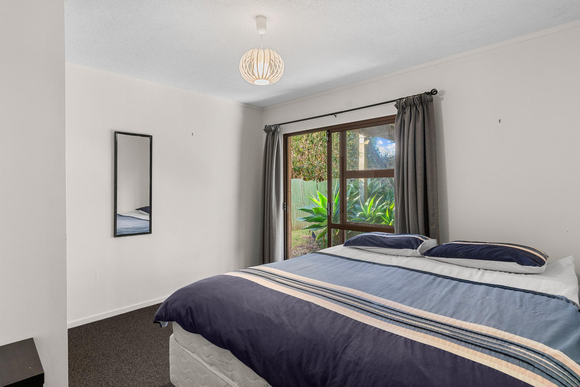 The spacious front lawn provides plenty of room for parking and summer games, with a set of swings nestled among olive and pohutukawa trees—ideal for keeping little ones entertained. A single secure garage adds extra convenience, whether you're bringing bikes, boards, or beach gear.