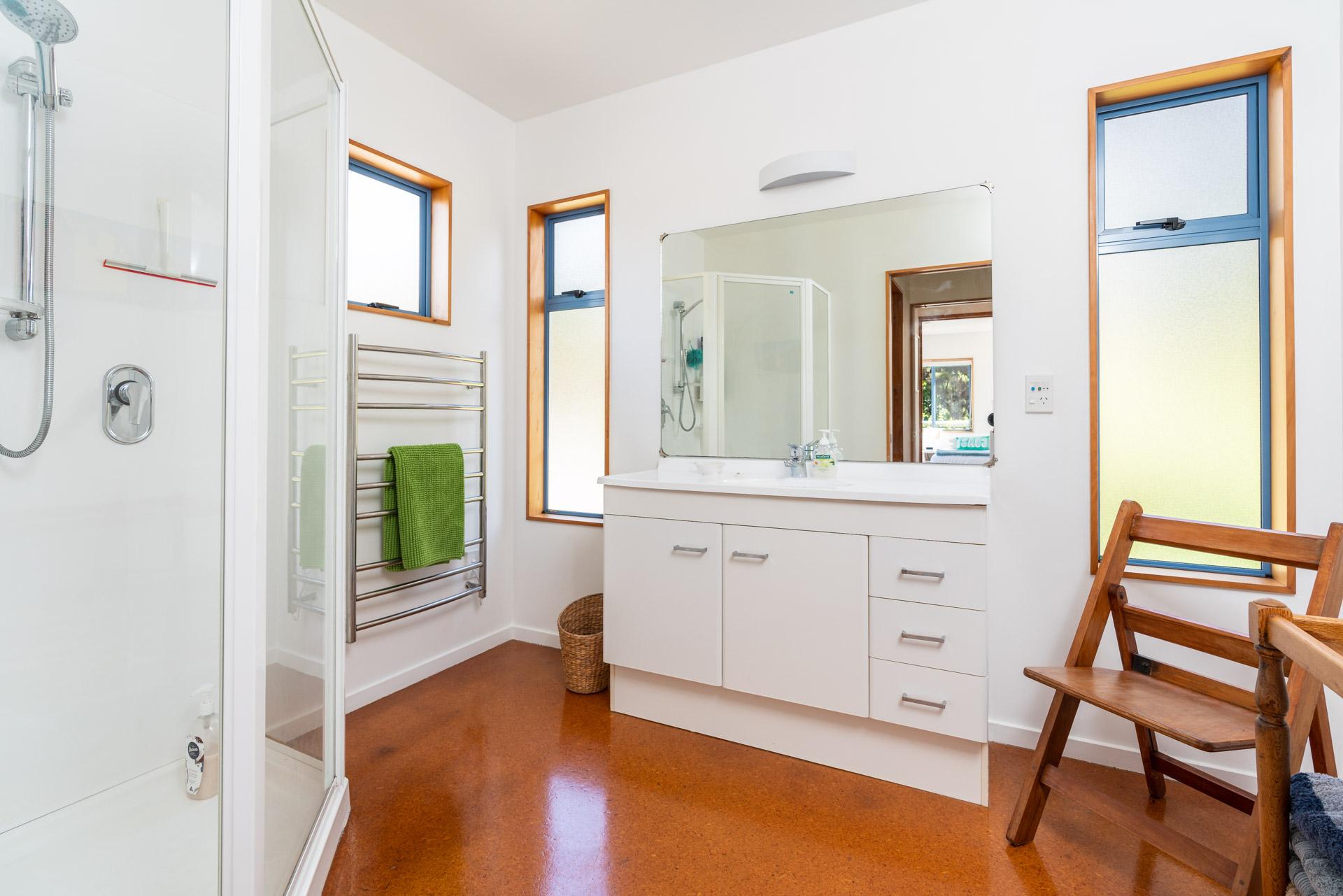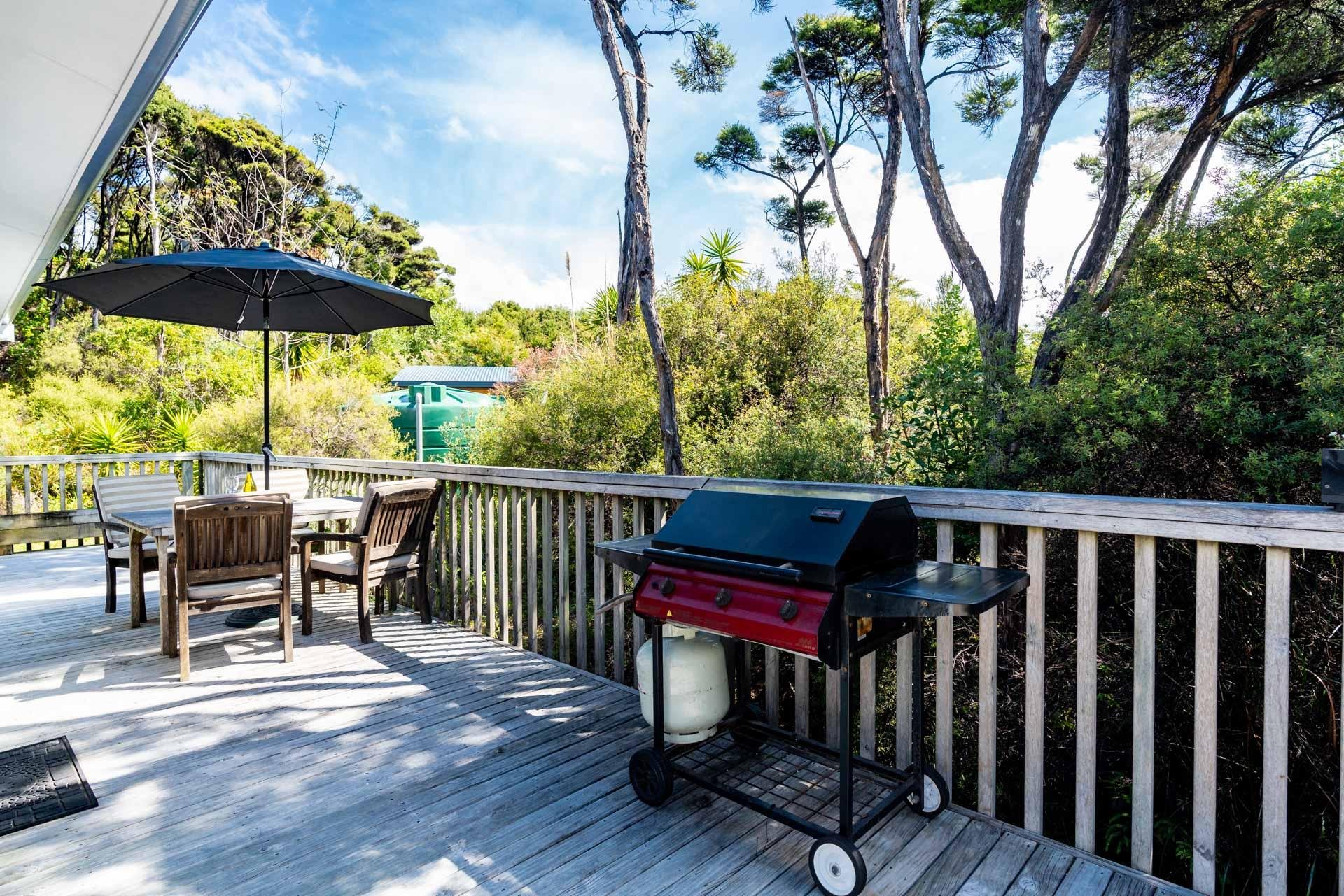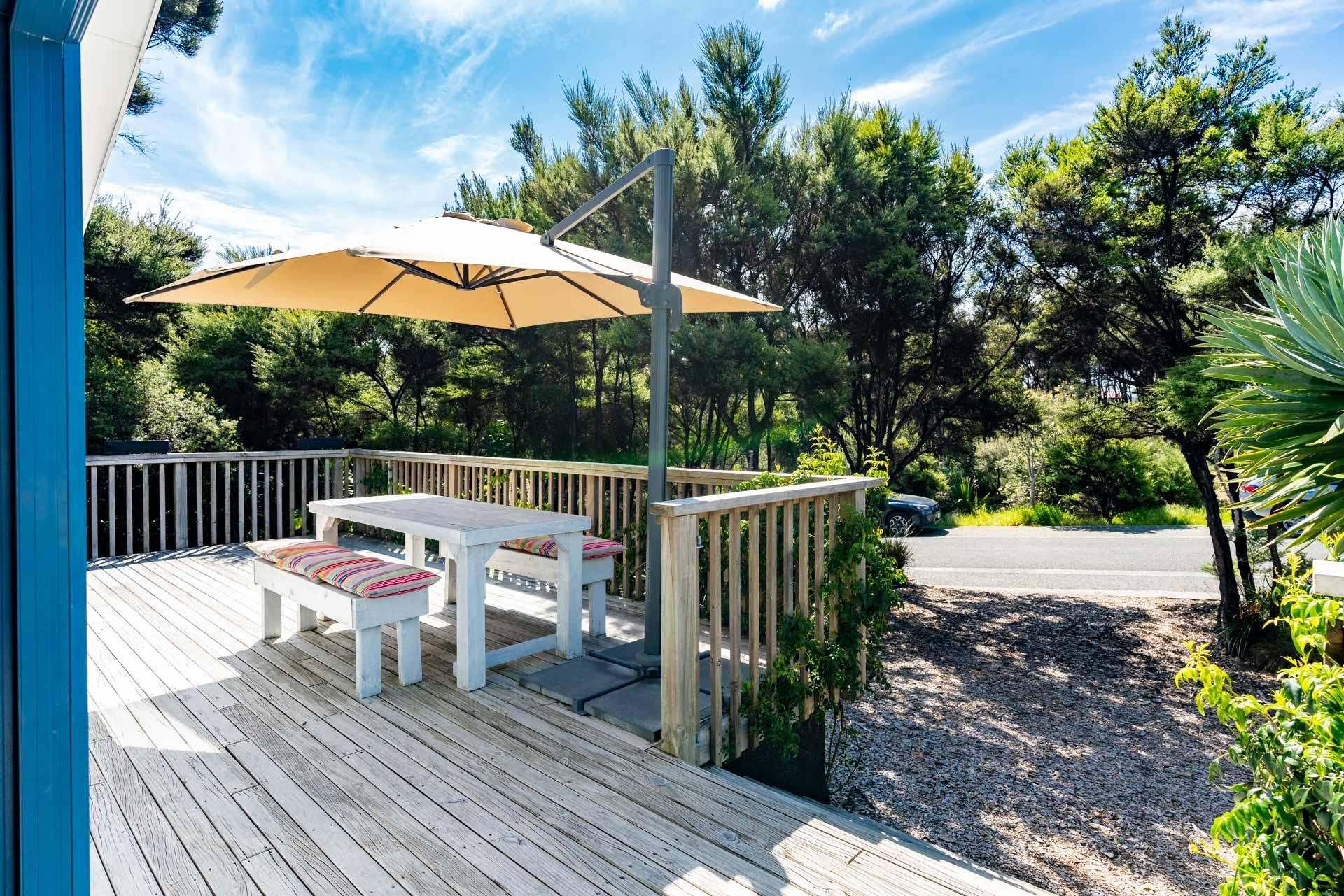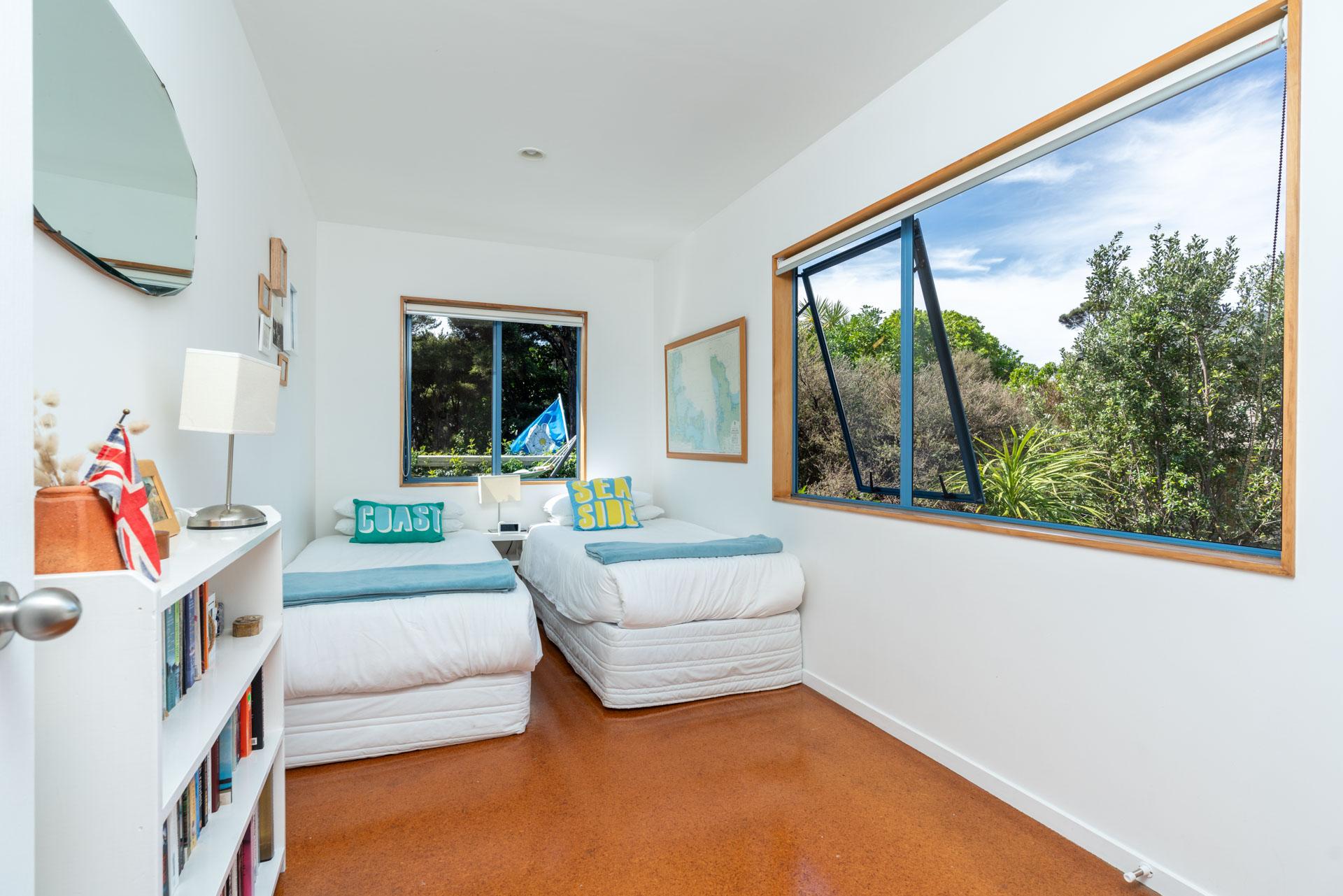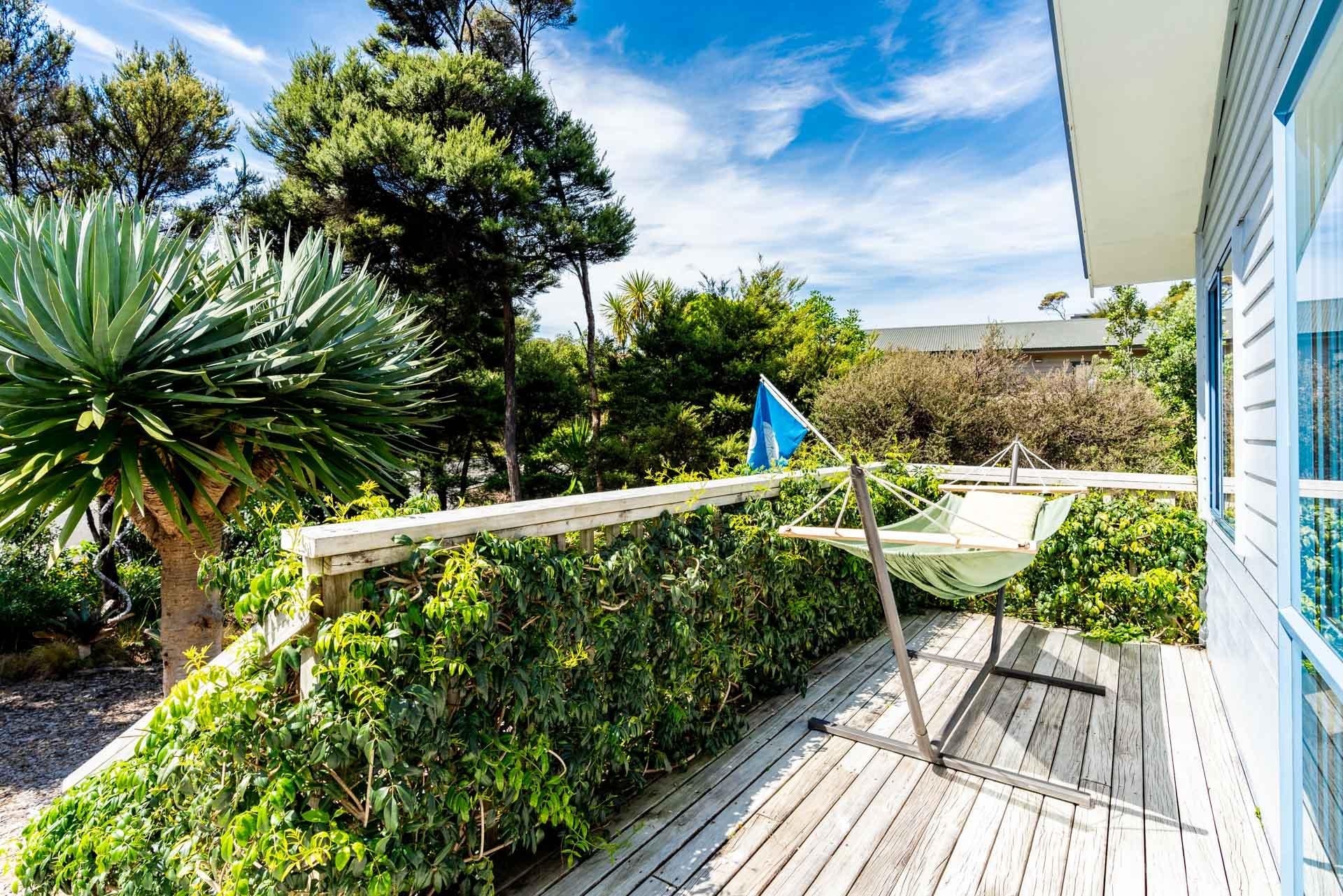 Inside, this bach features 3 bedrooms - one with a Queen and Single trundler, one with a Double and Single trundler, and the third with 2 Single beds, suiting a family or a small group of mature couples.