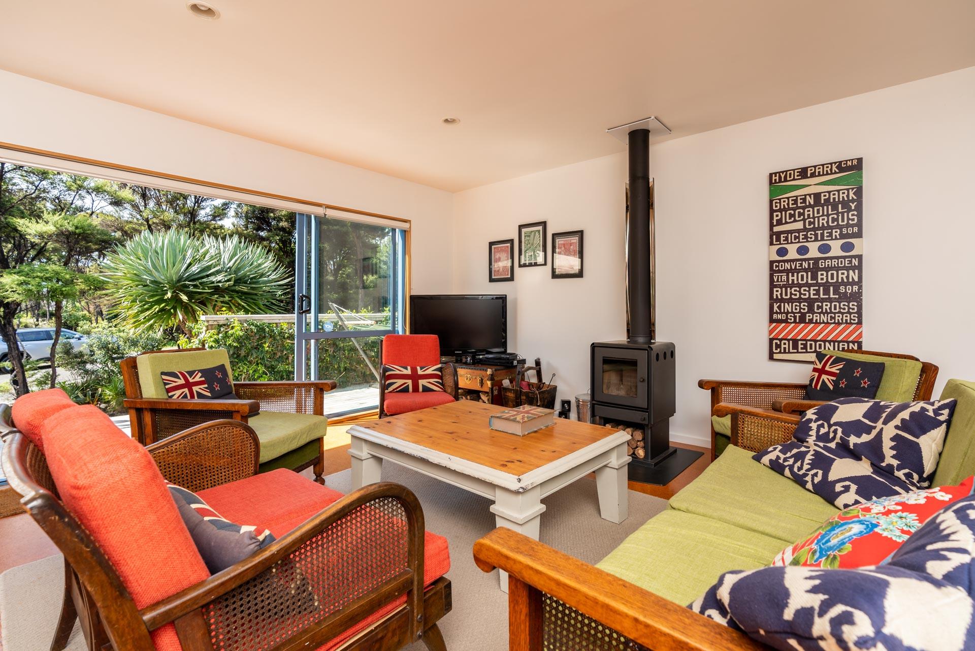 The cottage has 'Retro' styling, easy care floors and is light and airy and is truly a retreat for all seasons. In the summer, fling the doors open to give great indoor/outdoor flow. Set up the outside dining and entertain away or for those wanting a slightly more sedate approach, kick back in the hammock with a good book. In the cooler months, if its cosy you want, crank up the fire, there is wood a plenty for guest use and settle down to a large selection of films or family games.