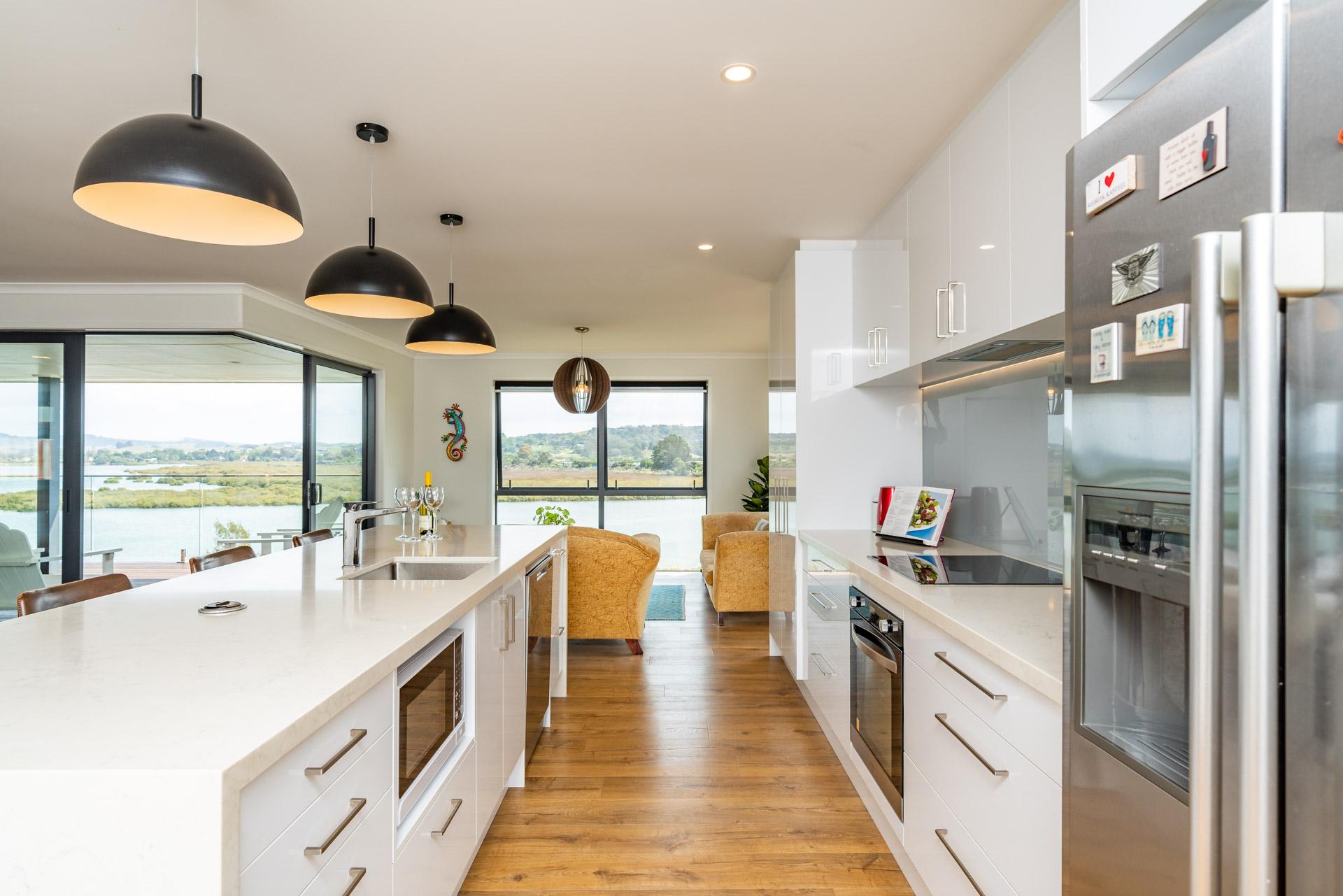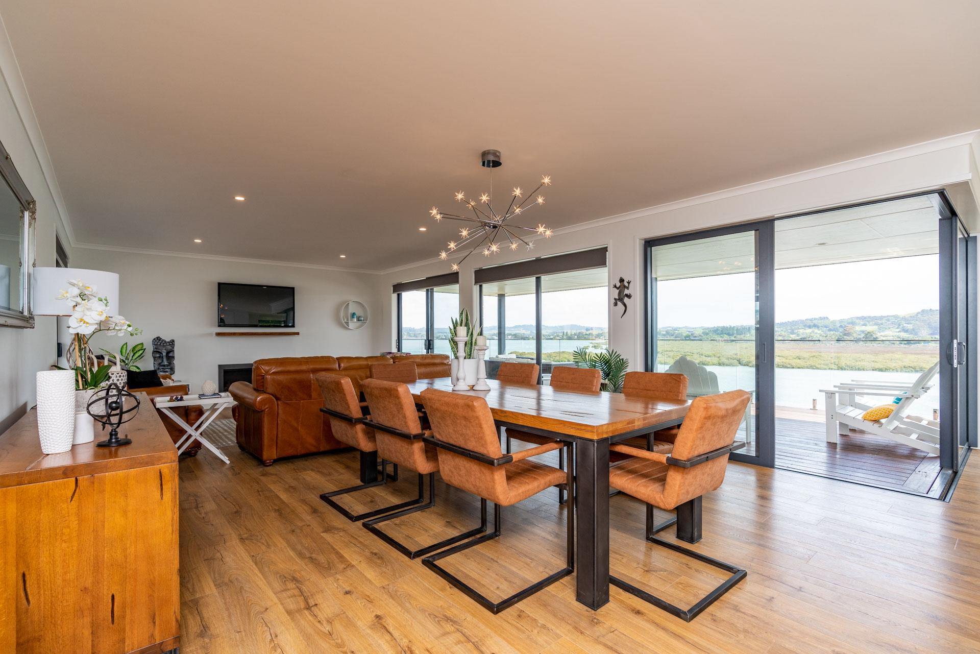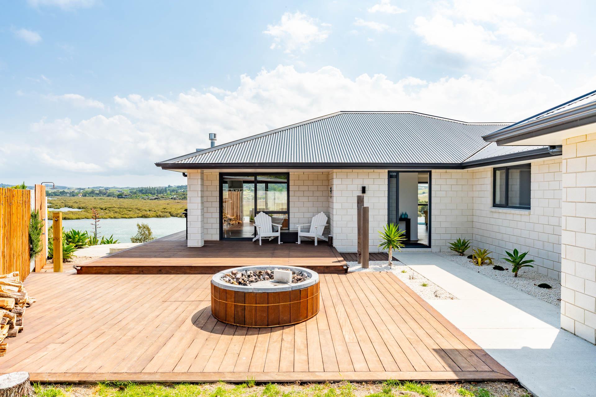 Kneedeep is a beautifully appointed, sunny, modern holiday home at the end of a quiet cul-de-sac in the Heads. Recently completed, this holiday home has been designed to make the most of the stunning estuary views which can be seen from the open-plan living/dining/kitchen, master bedroom and of course the covered deck.