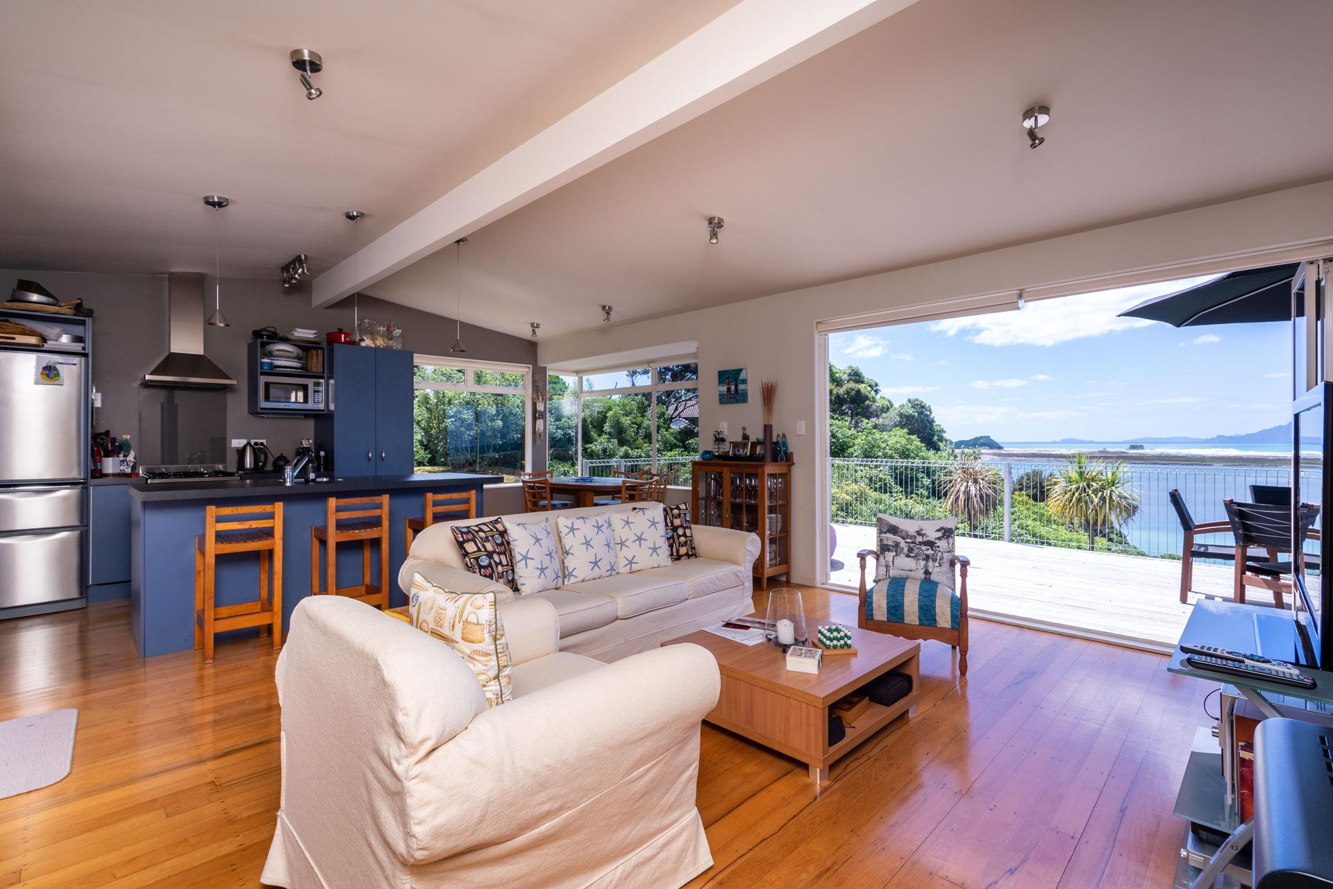 Set at the end of a long drive amongst mature bush is this secluded slice of Magical Mangawhai paradise. The cottage has been lovingly refurbished to capture the essence of beach holidays and the 180 degree estuary and ocean views are quite simply stunning. Upstairs features two bedrooms, one with a King and another with a Queen. There is also a third bedroom located downstairs which features a Queen and Single Bunk set. With decks on both sides of the house and large bi-folds there is great indoor/outdoor flow and plenty of options whatever the weather. There is also direct access to the estuary down a formed bush track with 150 steps to ensure you get your daily dose of exercise.