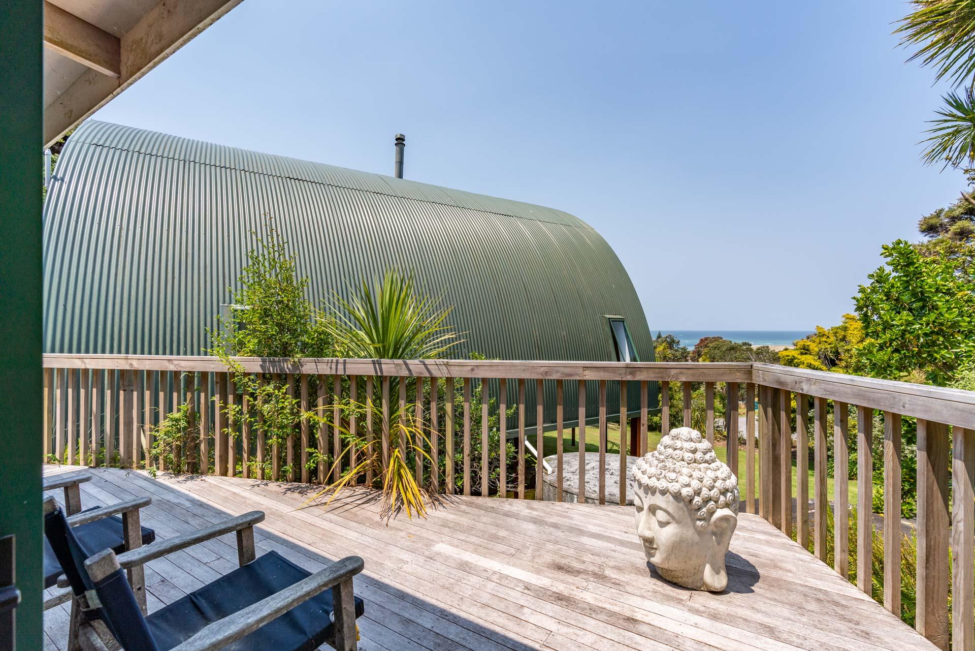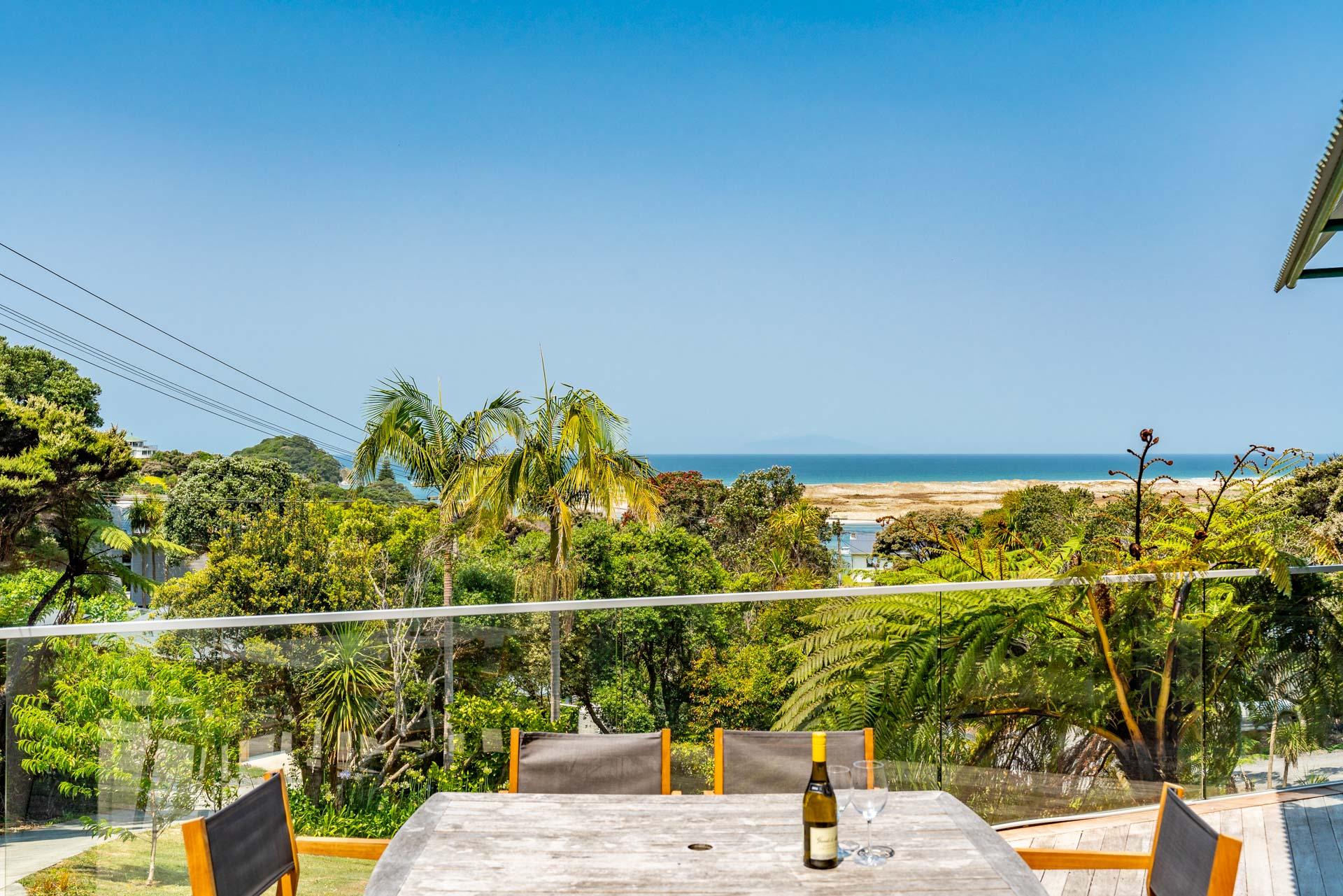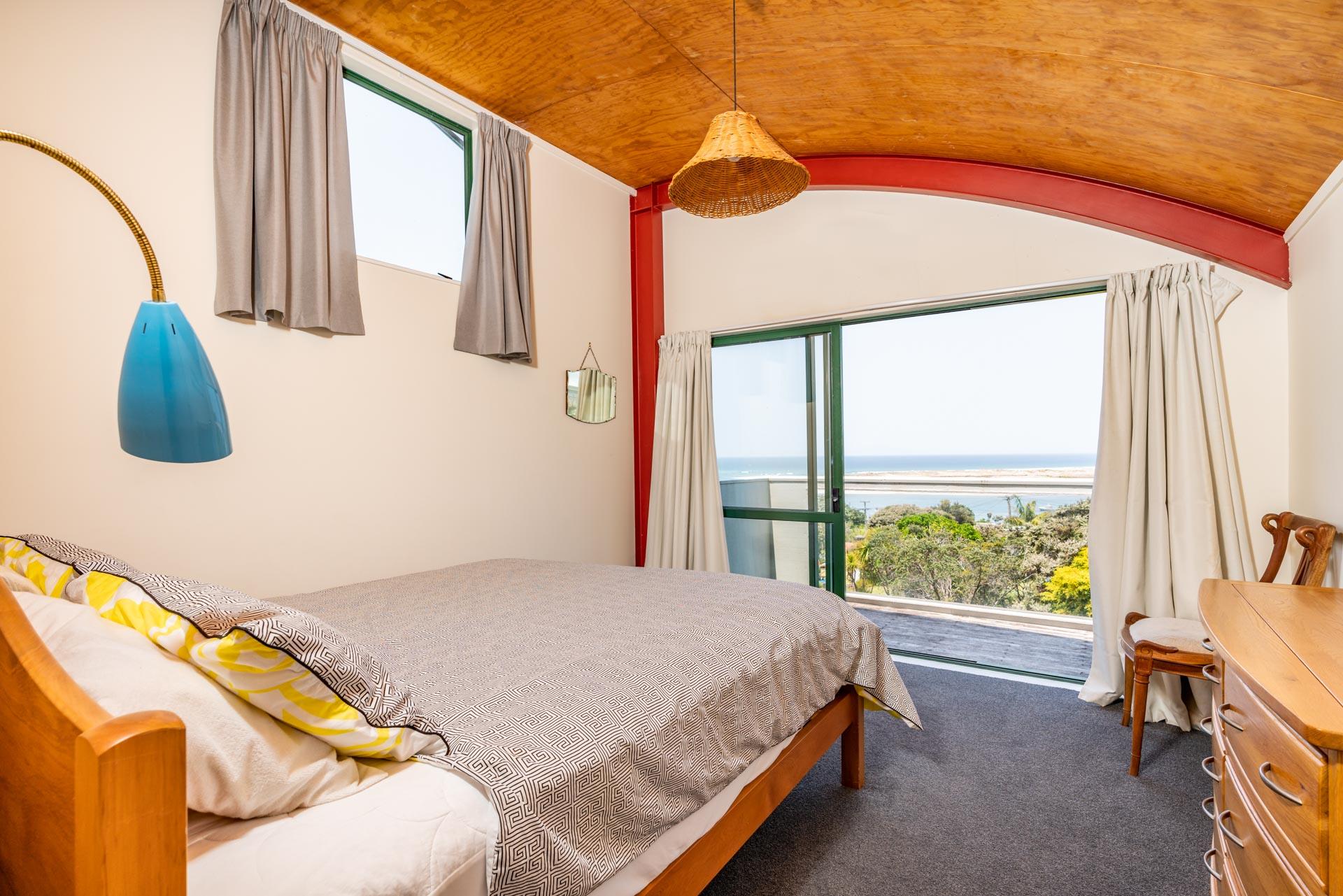 Situated on a lovely bush fringed, sunny section, this barn-style holiday home has the basic comforts and enjoys a pleasant outlook over the surrounding bush to the sand spit and ocean beyond. The house is a brief stroll to the calm, sandy estuary beach at the end of Pearl St, or walk a couple of minutes further to the stunning surf beach and avoid the summer traffic jams at the carpark.