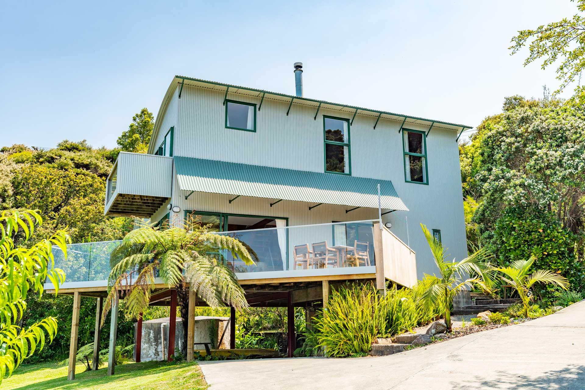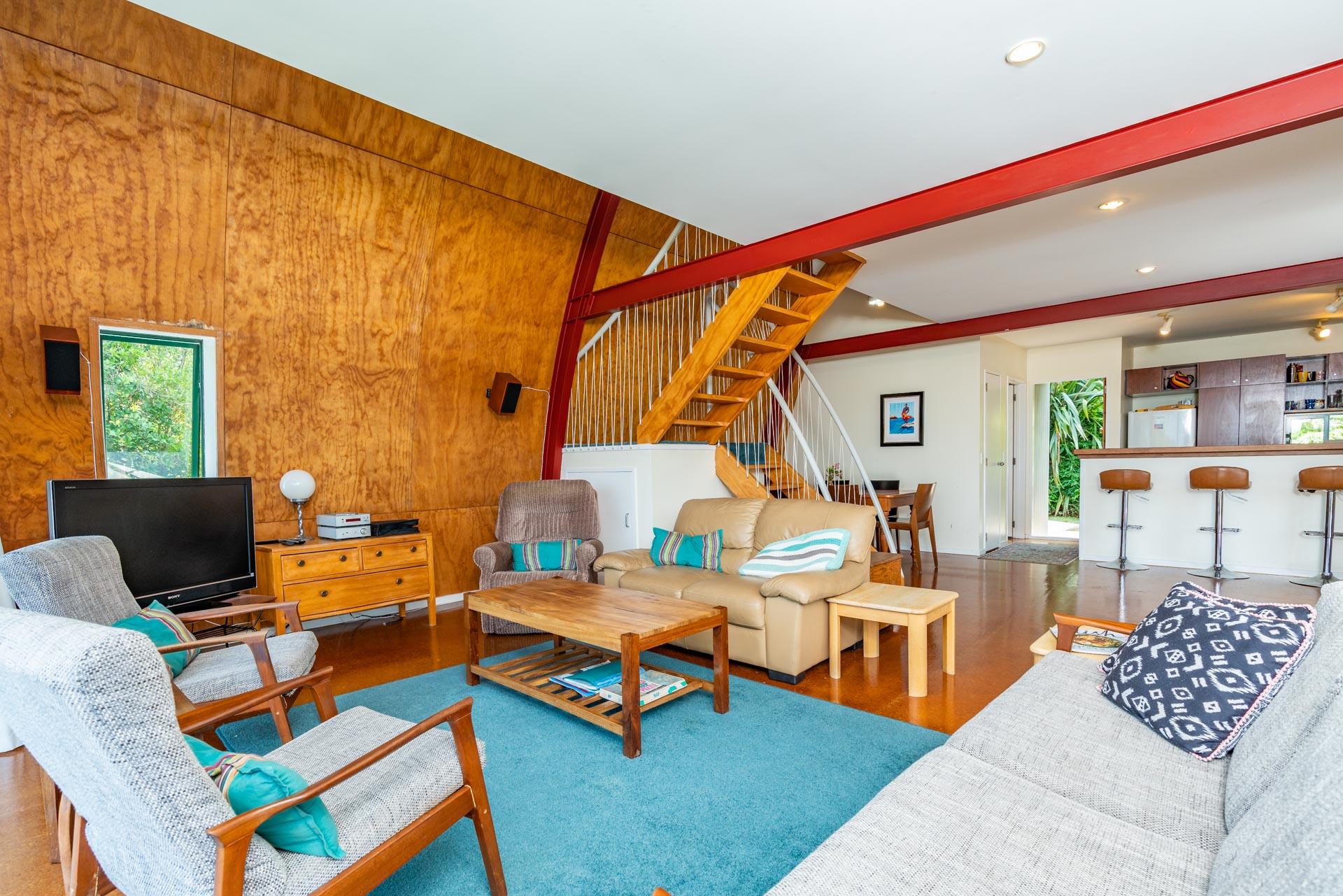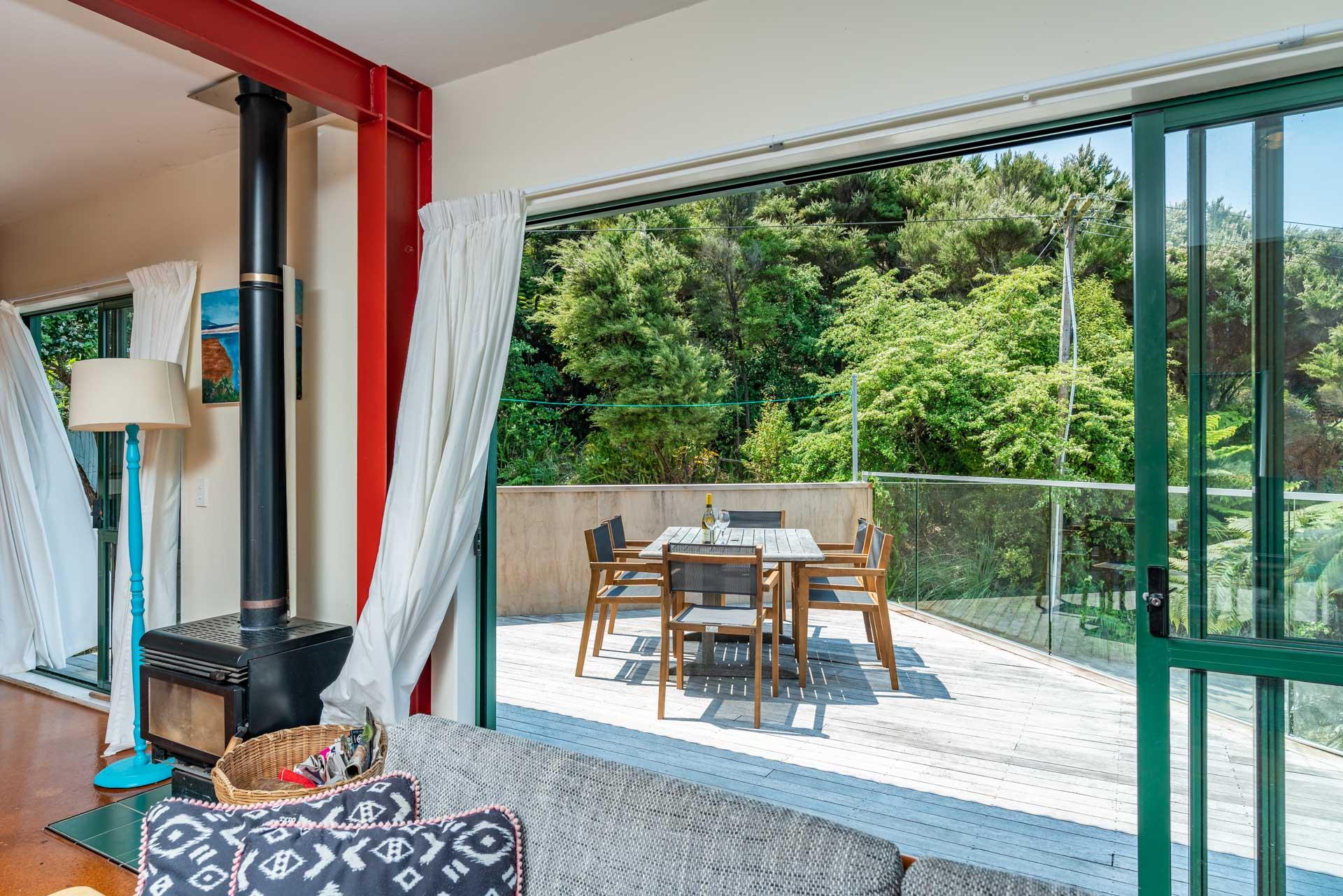 Situated on a lovely bush fringed, sunny section, this barn-style holiday home has the basic comforts and enjoys a pleasant outlook over the surrounding bush to the sand spit and ocean beyond. The house is a brief stroll to the calm, sandy estuary beach at the end of Pearl St, or walk a couple of minutes further to the stunning surf beach and avoid the summer traffic jams at the carpark.