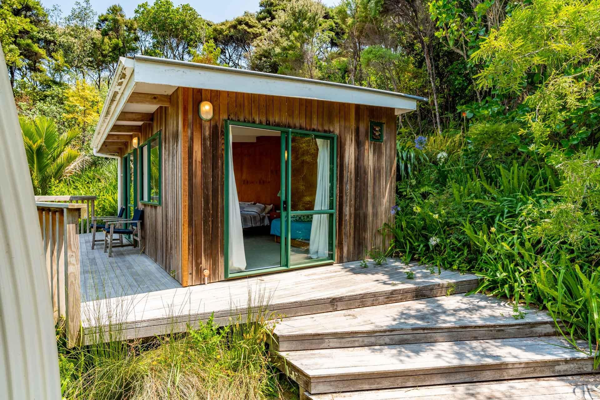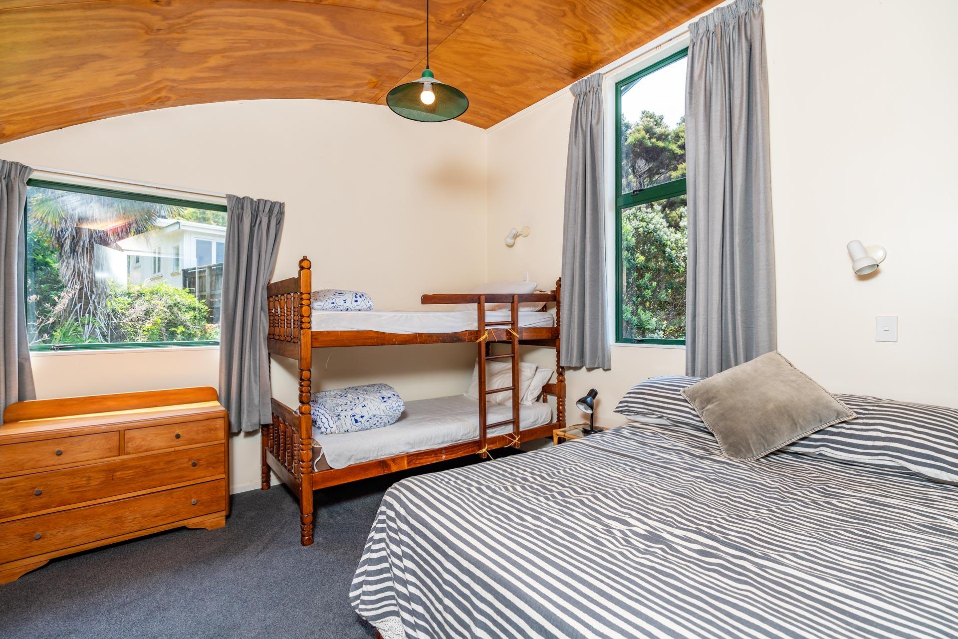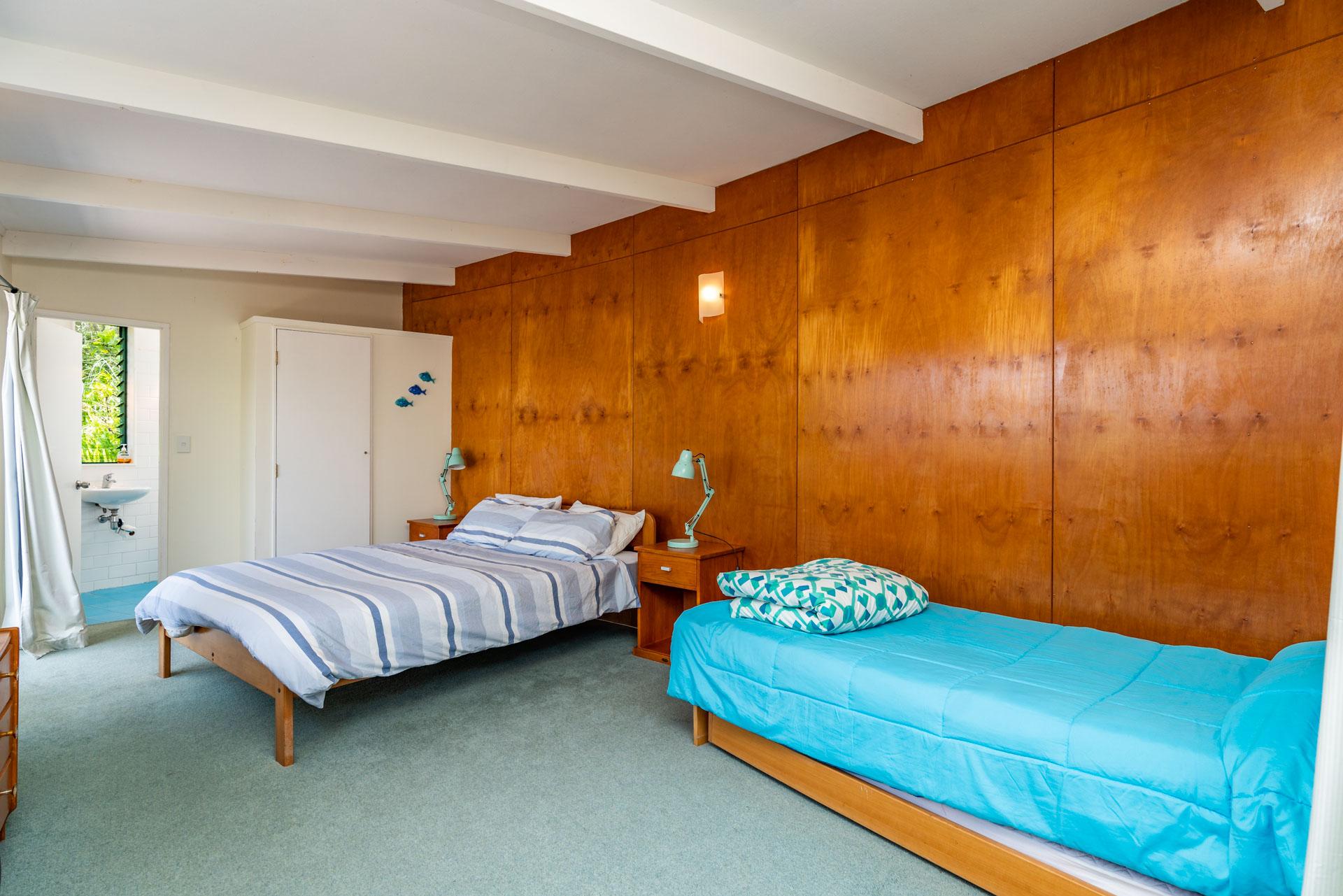 The main house has 2 bedrooms and a bathroom with separate toilet, and the upstairs landing between the rooms also has a single bed. For larger groups (over 6 people) there is a sleepout which sleeps up to an additional 4 people and it has its own bathroom.