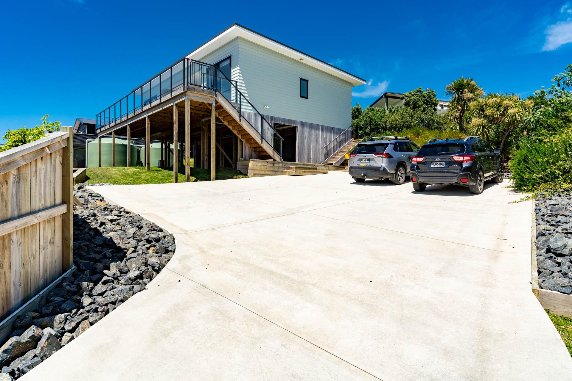 This modern, family friendly, 3 bedroom, 2 bathroom home provides easy and comfortable living with lovely elevated views of the estuary and only a short flat walk to everything that Mangawhai Village has to offer through a path at the end of the Right of Way. The house has a fresh and bright open plan living/dining/kitchen space which has been tastefully decorated.
