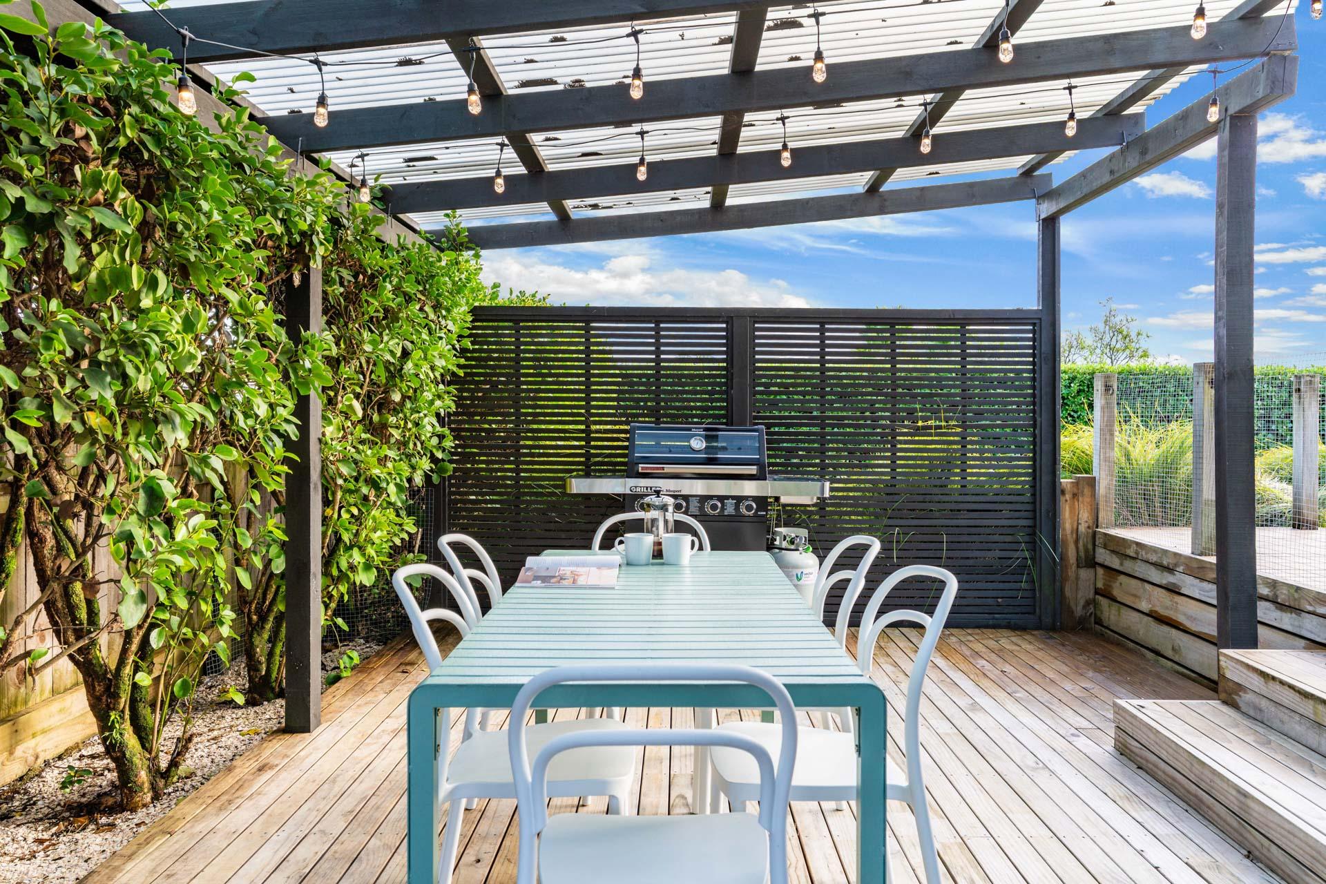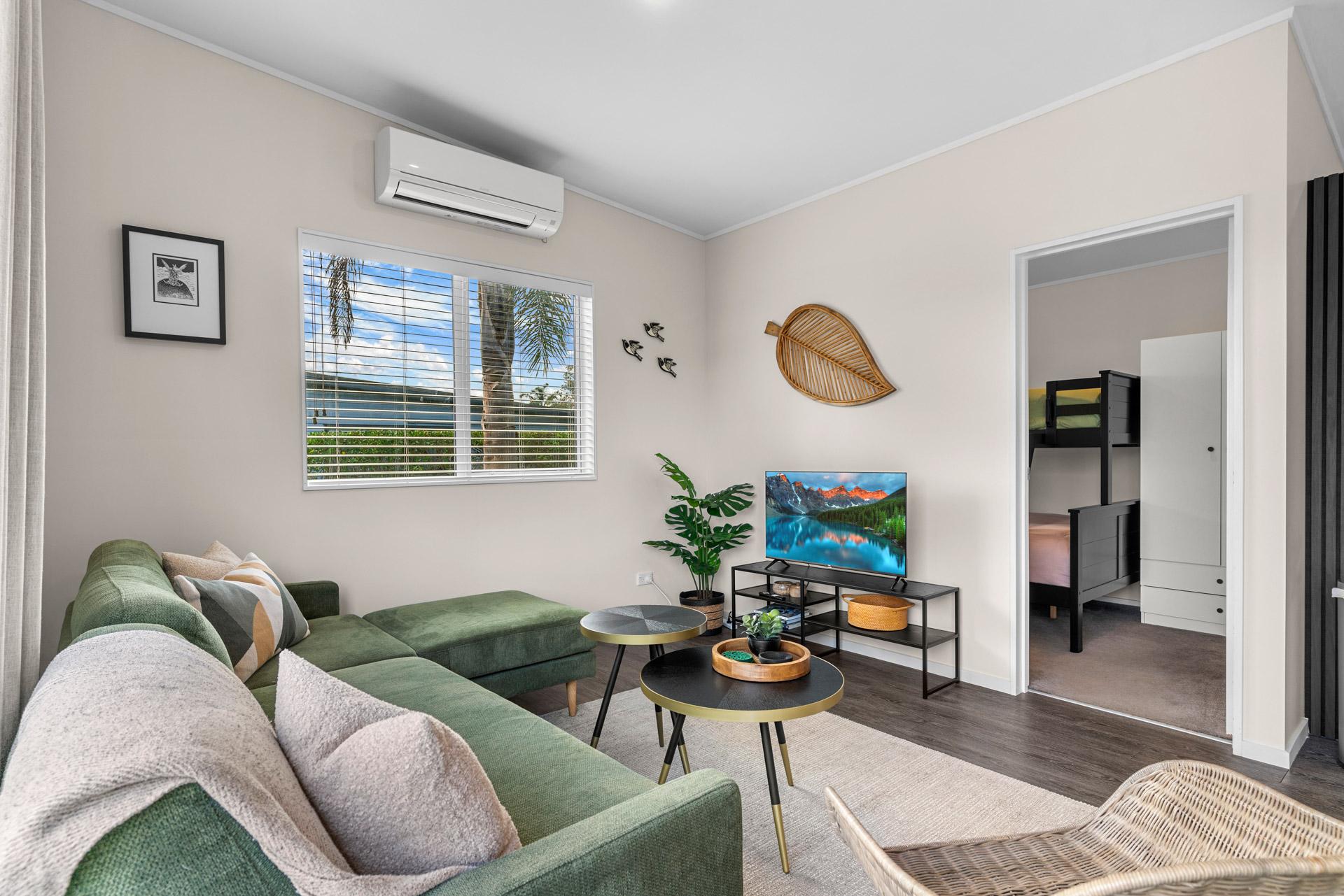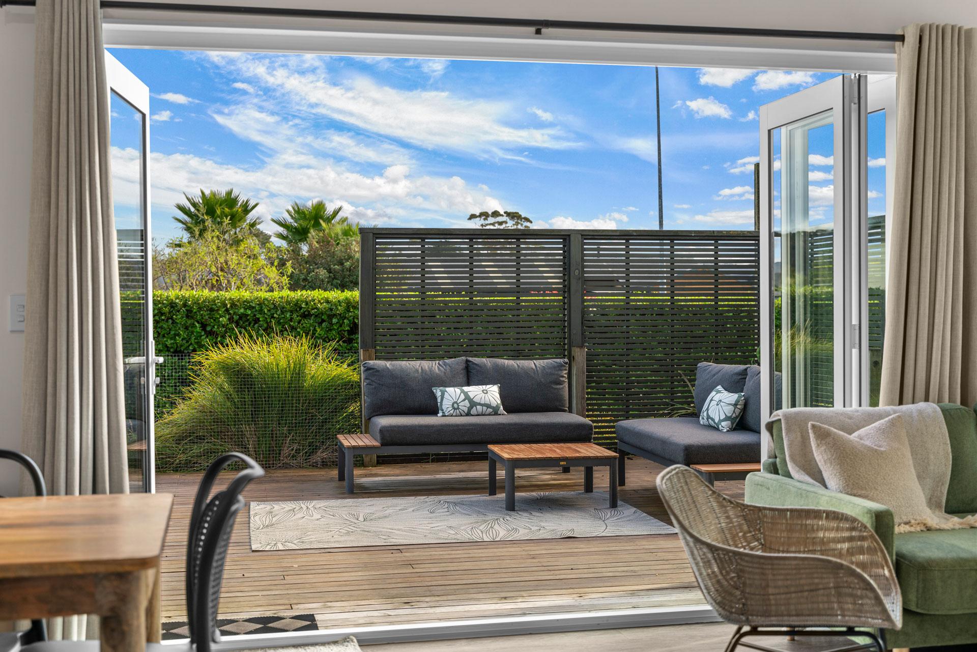 Designed for comfort in every season, the home is fully double-glazed and insulated, with a heat pump in the main living area to keep you warm and cosy on cooler days. The Smart TV and a selection of books provide entertainment options if the weather isn't so favourable or if you want to chill out after a day at the beach. With the fully fenced outdoor living areas, you can unwind with peace of mind, knowing the little ones are safe and can't wander off.
