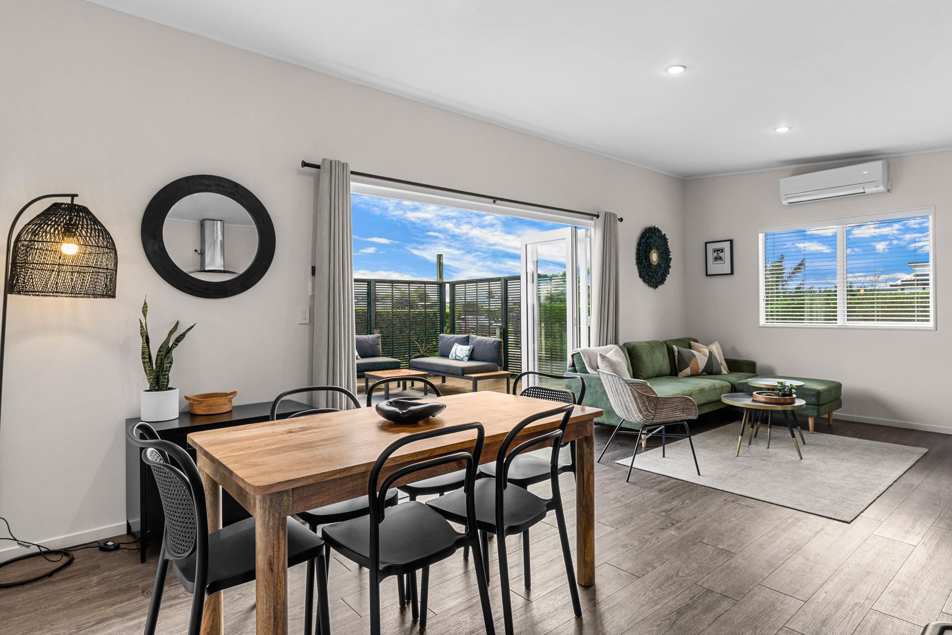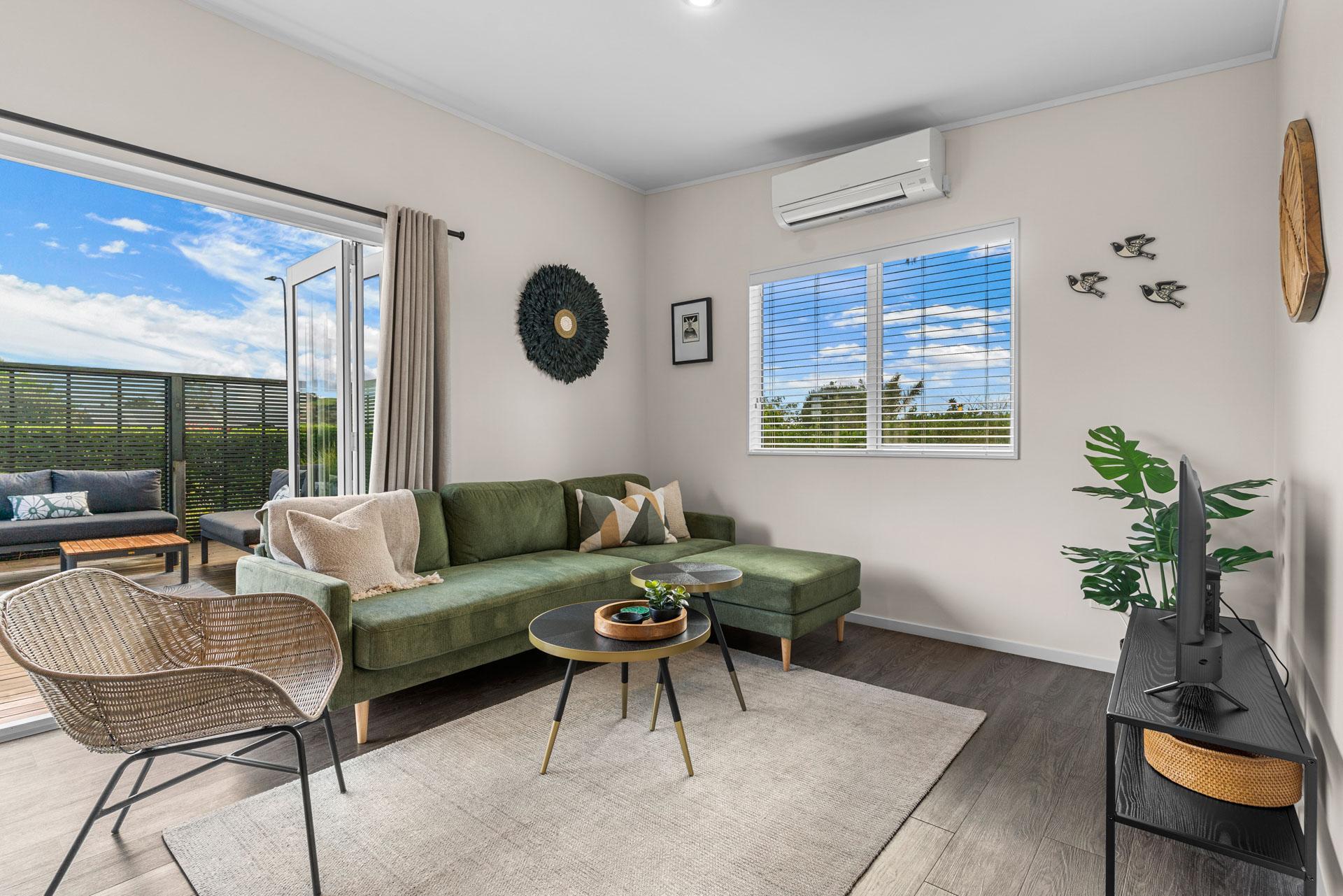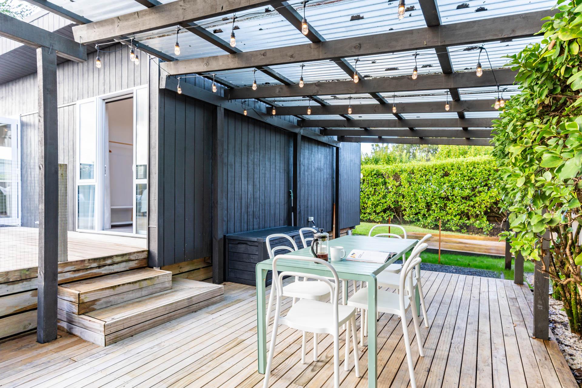 Designed for comfort in every season, the home is fully double-glazed and insulated, with a heat pump in the main living area to keep you warm and cosy on cooler days. The Smart TV and a selection of books provide entertainment options if the weather isn't so favourable or if you want to chill out after a day at the beach. With the fully fenced outdoor living areas, you can unwind with peace of mind, knowing the little ones are safe and can't wander off.