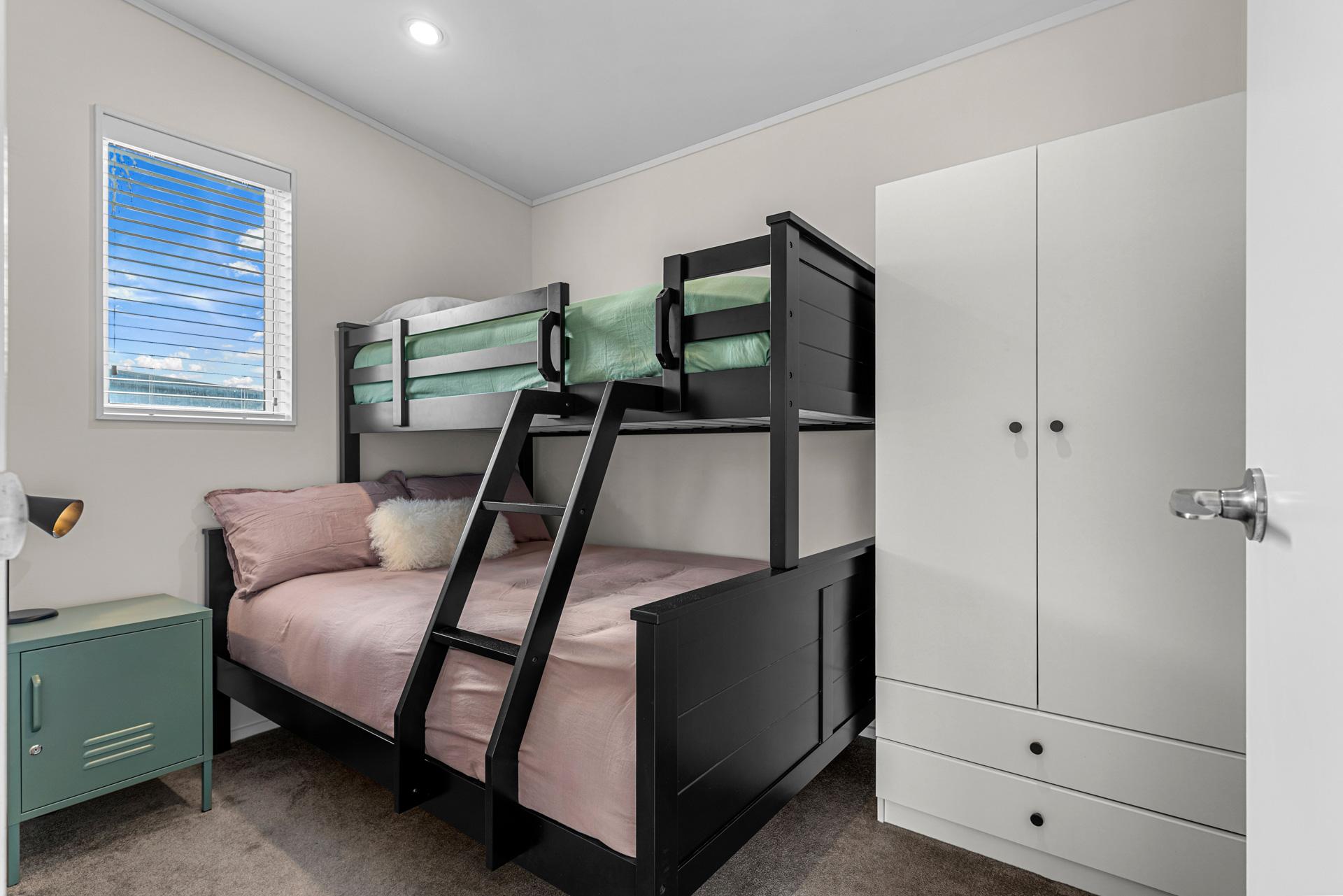 This charming north-facing home is the ideal base for a relaxed Mangawhai getaway. Bathed in natural light, it features two outdoor living areas and a spacious front lawn—perfect for alfresco dining, soaking up the sun, or a casual game of backyard cricket. Inside, the bach features 2 bedrooms - one with a King, and the other with a Single over Double Bunk set - along with one bathroom.