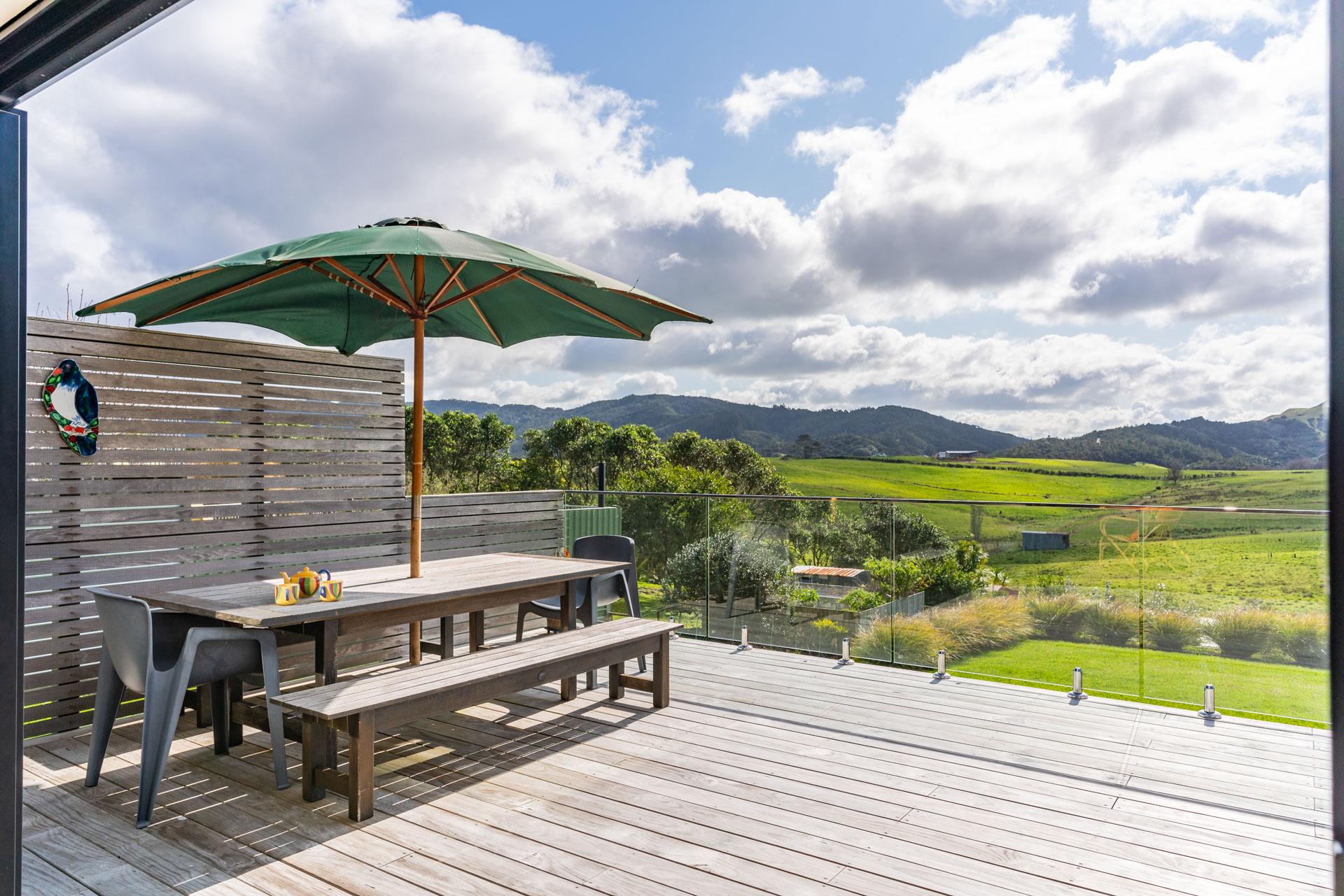 Handily located on Cullen St, this holiday home has rural views from a large, sunny, north-facing deck. The 3-bedroom, 2.5 bathroom house plus separate bunk room has great indoor and outdoor living spaces and is only a short drive from everything Mangawhai has to offer. In the main house, all 3 bedrooms are located upstairs and feature a King, a Queen, and 2 King Singles, while the bunk room provides 2 sets of King Single Bunks. The house is well-appointed and provides easy living and is great for a couple of families to holiday together. Relax on the deck with something cold in your hand whilst enjoying the sun and views.
