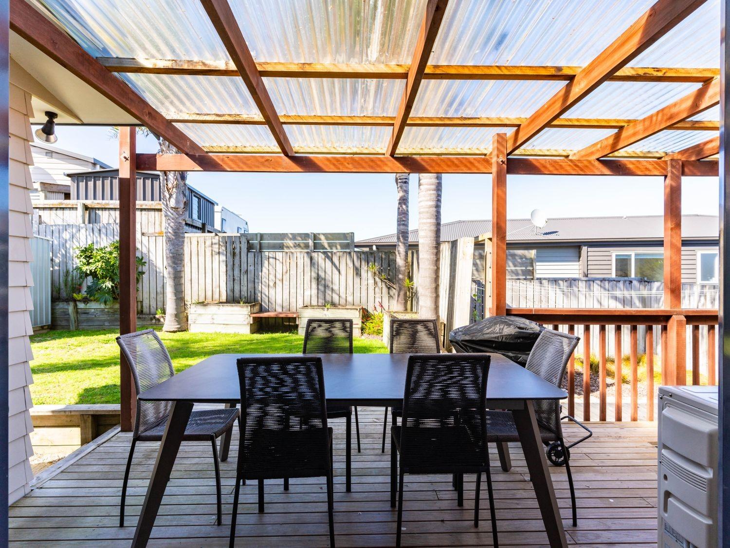The fully fenced and partially covered rear courtyard provides a peaceful retreat and you can relax knowing that the little ones can't wander. Stairs lead to a convenient outdoor shower—perfect for rinsing off after a day at the beach. A separate laundry with direct outdoor access to the clothesline adds extra convenience.