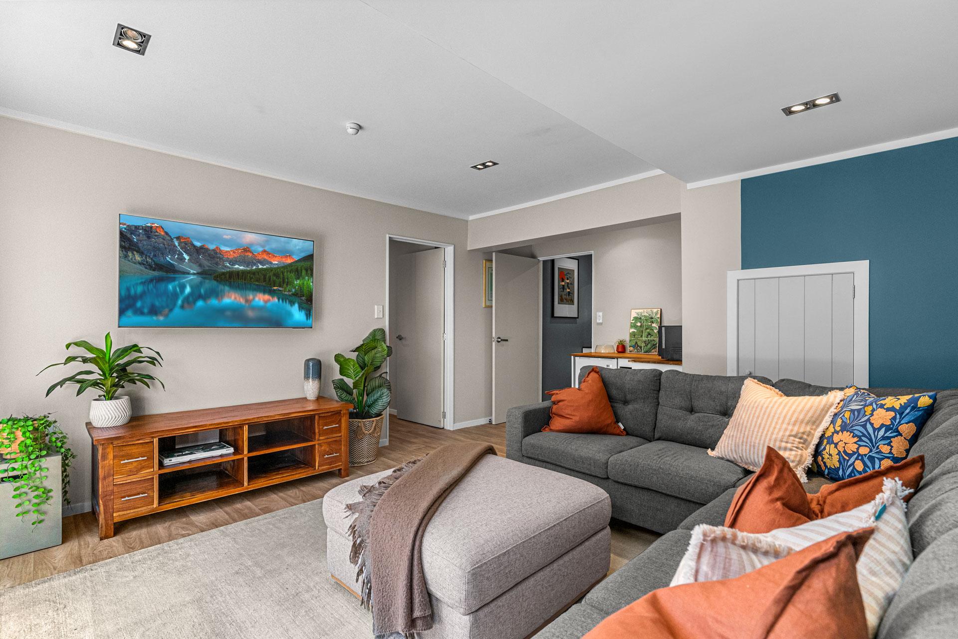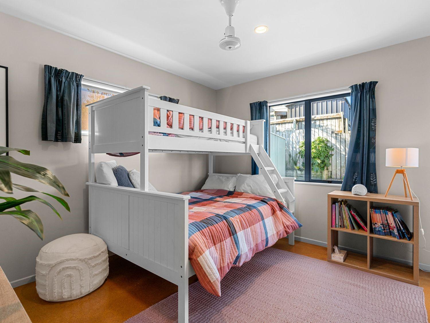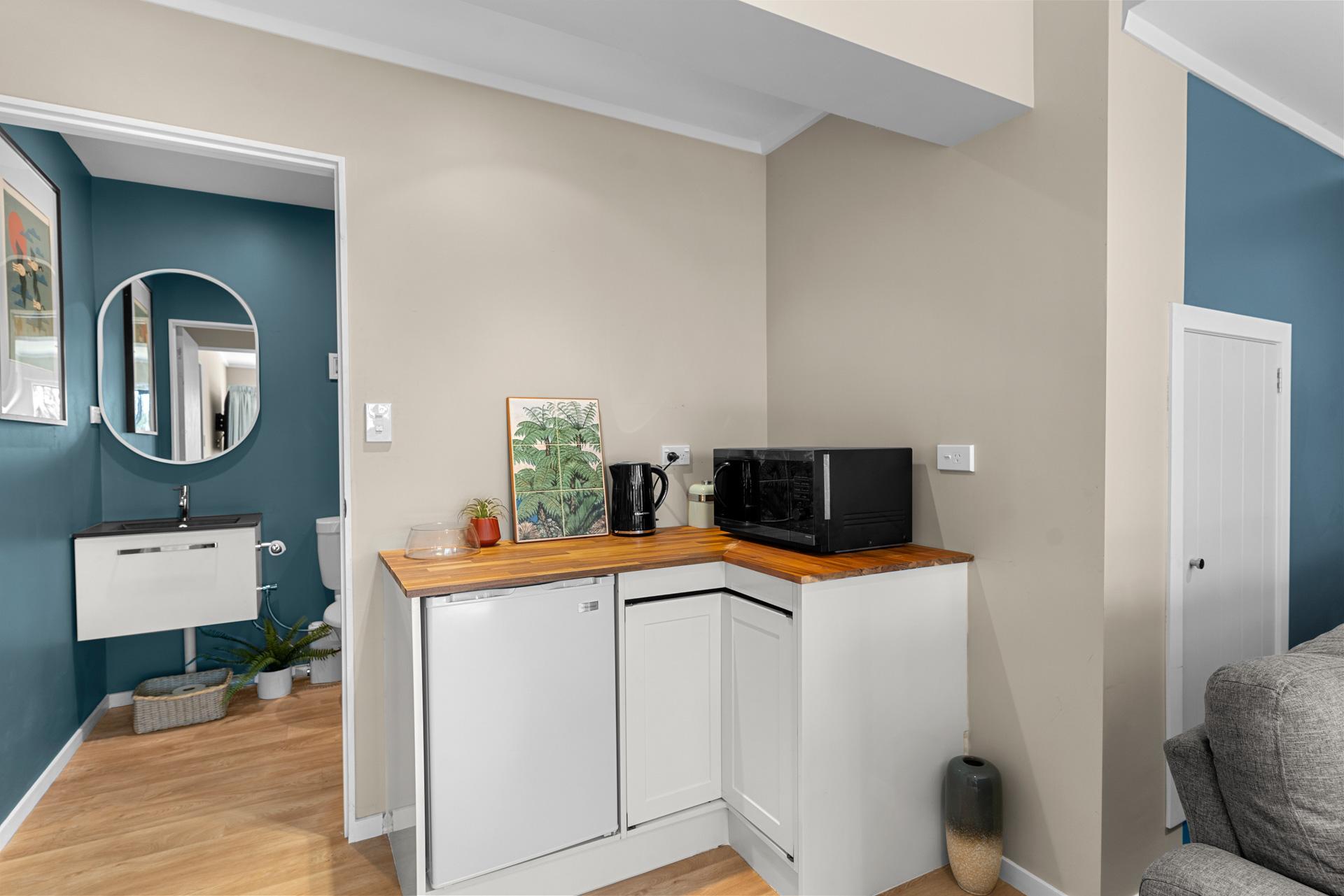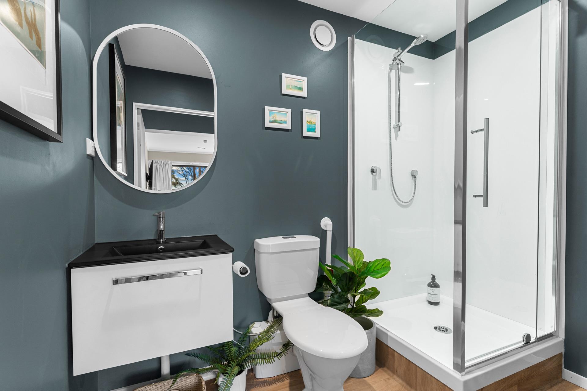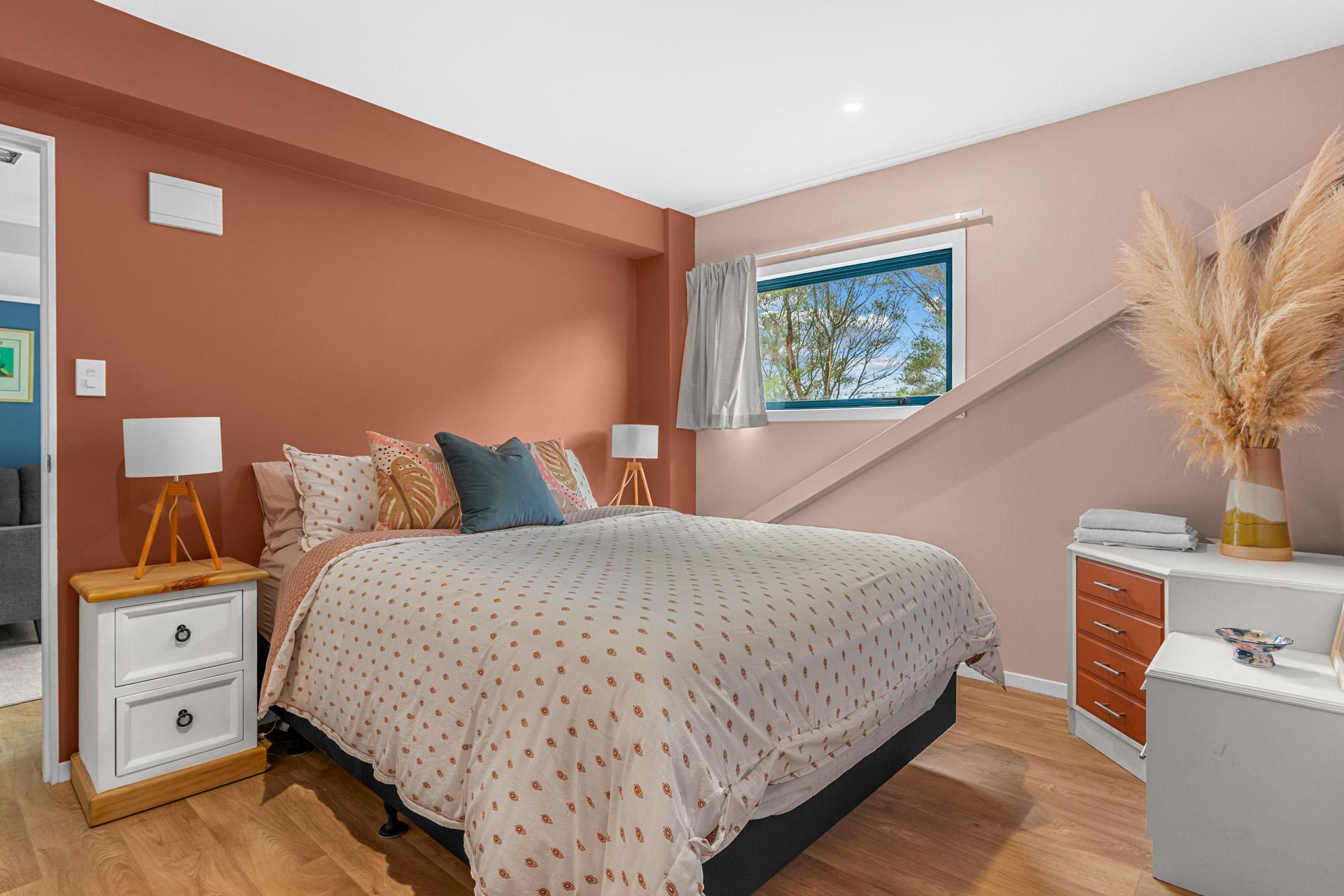 Upstairs there are three double bedrooms and two bathrooms. The master suite features a king bed, a walkthrough wardrobe, and a private ensuite, the second bedroom offers a queen bed, while the third is perfect for kids, with a single over double bunk and pull-out single bed. Two of the bedrooms also open onto the deck, extending the indoor-outdoor flow. Downstairs is a separate self-contained area with a bedroom with Queen bed, second living, kitchenette and bathroom. With plenty of space for everyone it is great for 1-2 families or a family with grandparents.