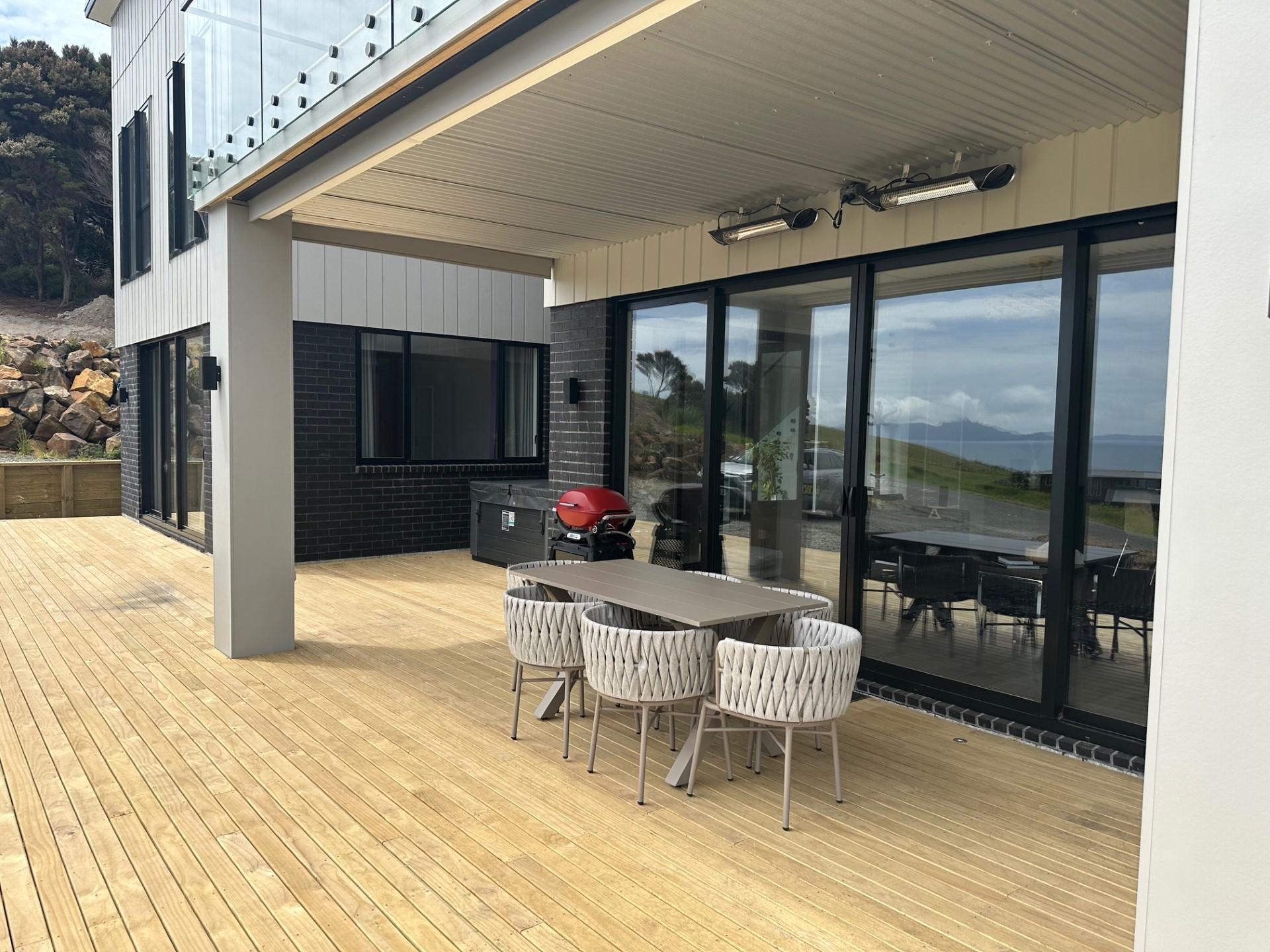 Welcome to your perfect family-friendly retreat, where every detail has been considered to ensure a blissful holiday experience for guests of all ages. Nestled in a gated community, this brand-new, well-appointed holiday house offers a serene atmosphere, making it an ideal escape for families. With 190 square meters of decking space, a private spa pool, 180-degree panoramic ocean views, and rolling hills in the backdrop, this is a haven where holiday memories are made. Picture yourself on the expansive deck, enjoying the views while you cook up a storm with a brand new Weber BBQ, or simply unwind in the spa pool. Whether you're seeking entertainment or relaxation, this deck is your personal sanctuary.
