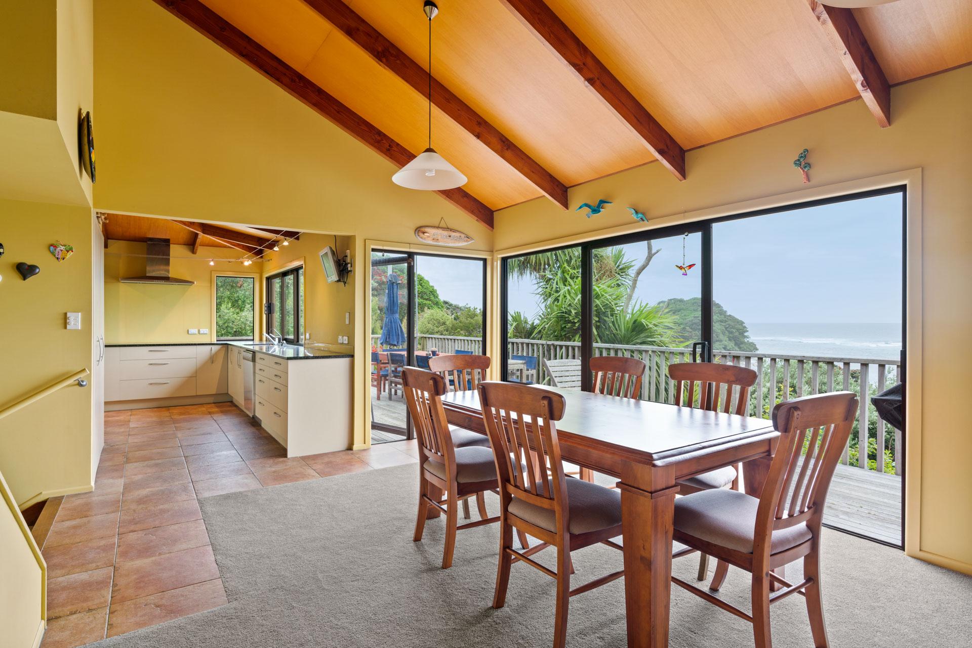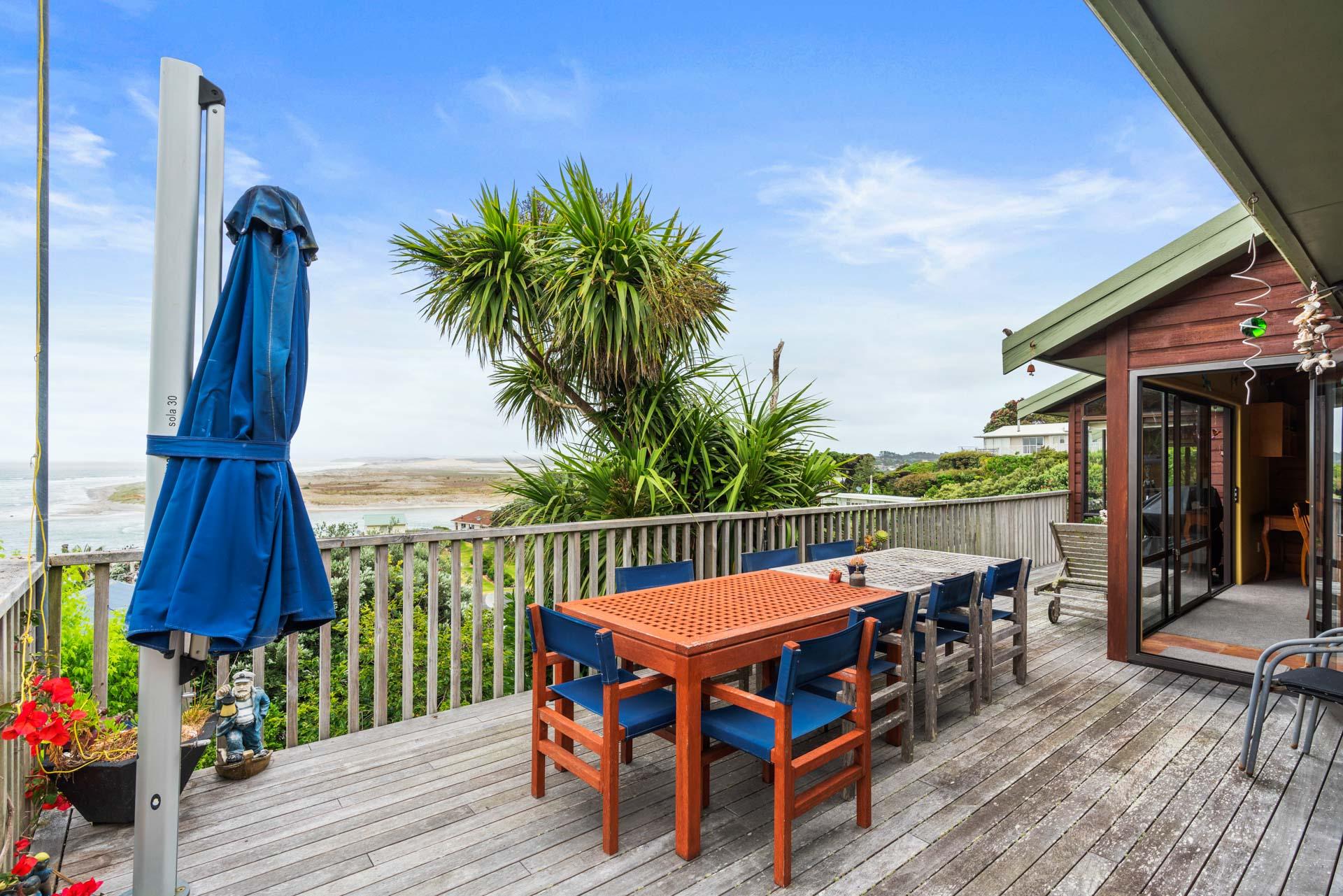 'Tahuna' means seaside in Maori and this large home on multiple levels has breath-taking ocean and estuary views and it is a short stroll to the surf beach and Picnic Bay. With multiple living areas and bathrooms, and decks on 2 levels, it is ideal for families or mature couples! Tucked up on a driveway off Wintle St, it offers close proximity to all the action whilst providing a quiet Oasis to retire to. With kayaks available to use in the estuary, a playhouse, table tennis table and a hammock in a shaded spot to chill with a book, this property ticks so many boxes. Enjoy soaking up the rays on the large deck or sit inside and you will still be able to enjoy the magnificent views from the kitchen, dining room and living room.